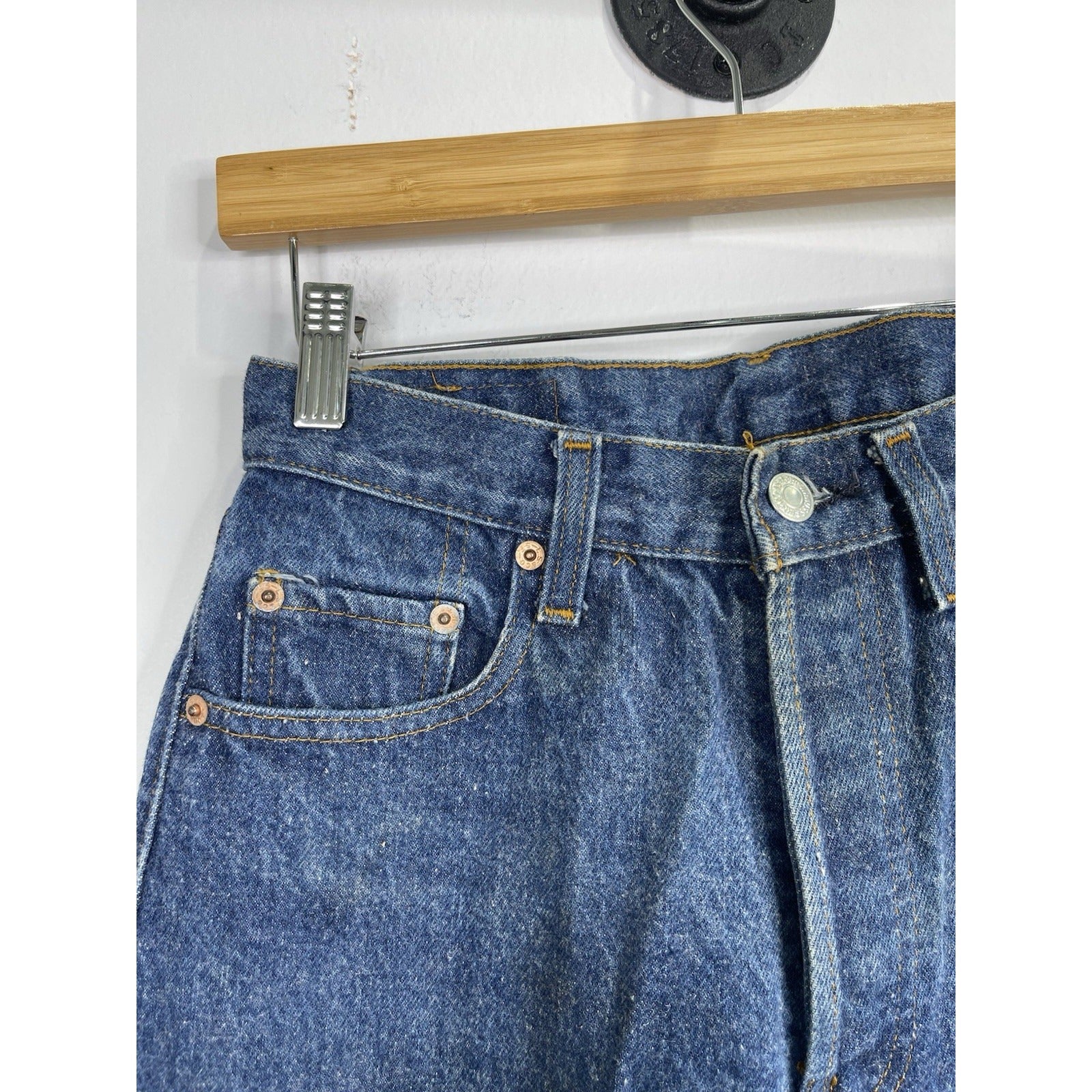 This product is a pair of Men's Vintage Levi Strauss & Co. 507 Blue Jeans in size 29x36. The jeans feature a button closure, medium fabric wash, and are made of cotton denim. With a regular fit and 5-pocket design, these Levi's jeans are a stylish and comfortable option for any man looking to add a retro touch to their wardrobe. Perfect for those who appreciate 80s and 90s fashion, these jeans are a timeless addition to any collection. Made in the United States, these Levi's jeans are a classic choice for anyone seeking a piece of denim history.