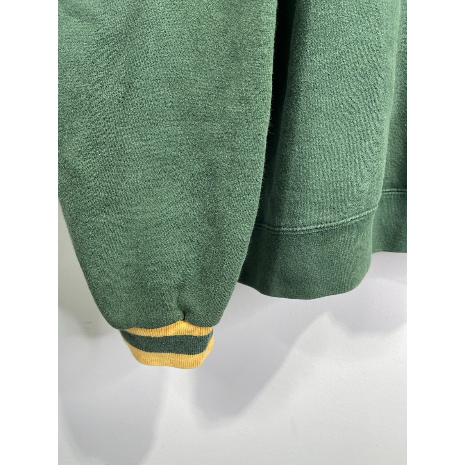 This Men’s Vintage NFL Football Green Bay Packers Embroidered Sweatshirt in size XL is a classic piece of fan apparel officially licensed by the National Football League (NFL). Made by Proplayer, this green sweatshirt features the iconic team logo of the Green Bay Packers, perfect for showing off team spirit during the regular season. Crafted with quality materials sourced from South Korea, this sweatshirt is a stylish and comfortable way for any male football fan to represent their favorite team.