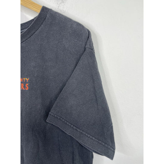 This Men’s Vintage Orange Graphic Orange County Choppers Black T-Shirt in size L features a classic crew neck design with short sleeves, making it perfect for any casual occasion. The shirt is made of comfortable cotton material and is a regular fit, suitable for all seasons. The graphic print showcases a biker and motorcycle theme, giving it a rugged and stylish look. Perfect for men who appreciate vintage fashion and want to make a statement with their wardrobe choices.