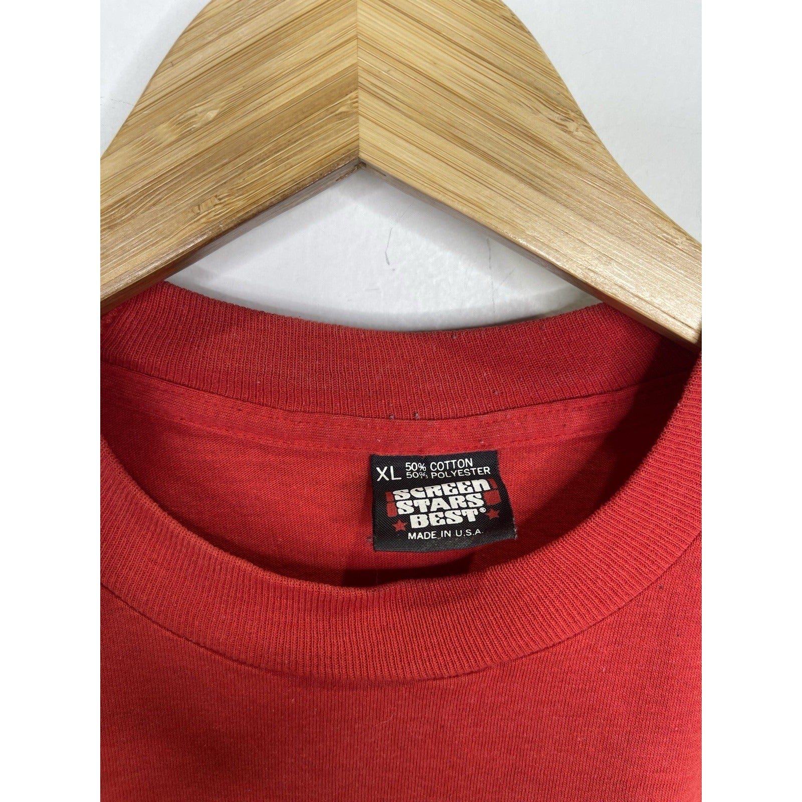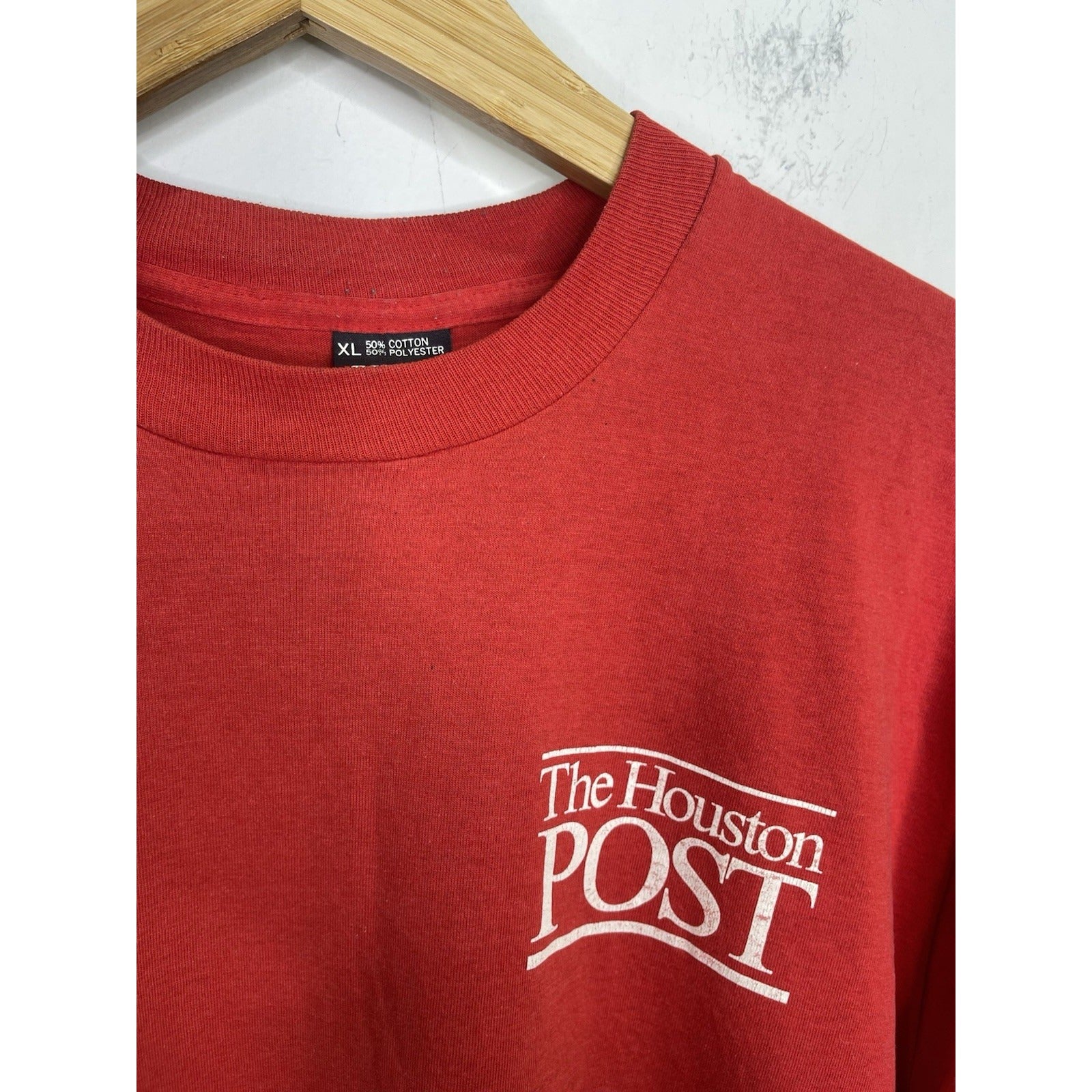 This Men's Vintage Red The Houston Post Short Sleeve Graphic T-Shirt in size XL is a classic piece perfect for any sports enthusiast or 90s fan. Made of breathable cotton material, this regular fit shirt features a crew neckline and a funny graphic print that is sure to make a statement. The color red adds a pop of fun to your wardrobe, making it a versatile piece for all seasons. With its easy care instructions and vintage appeal, this T-shirt is a must-have for any collection.