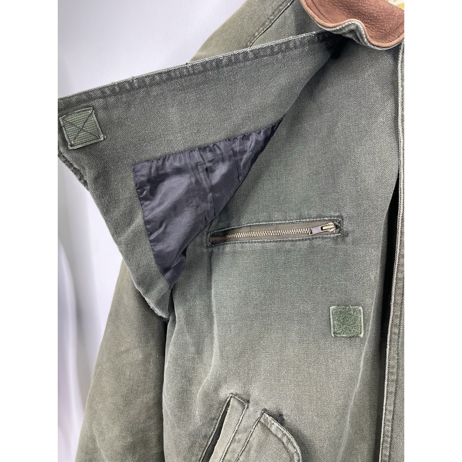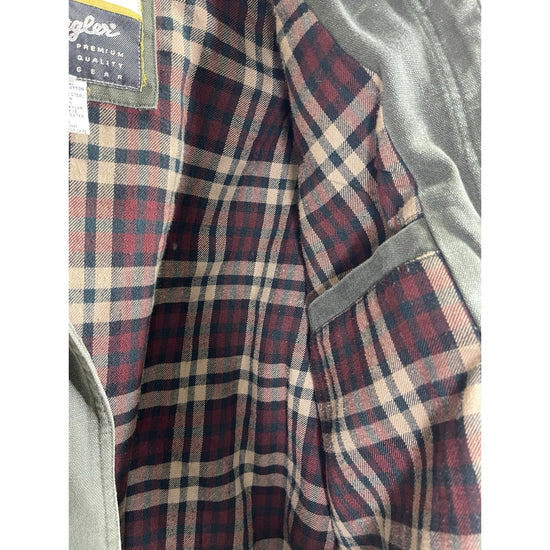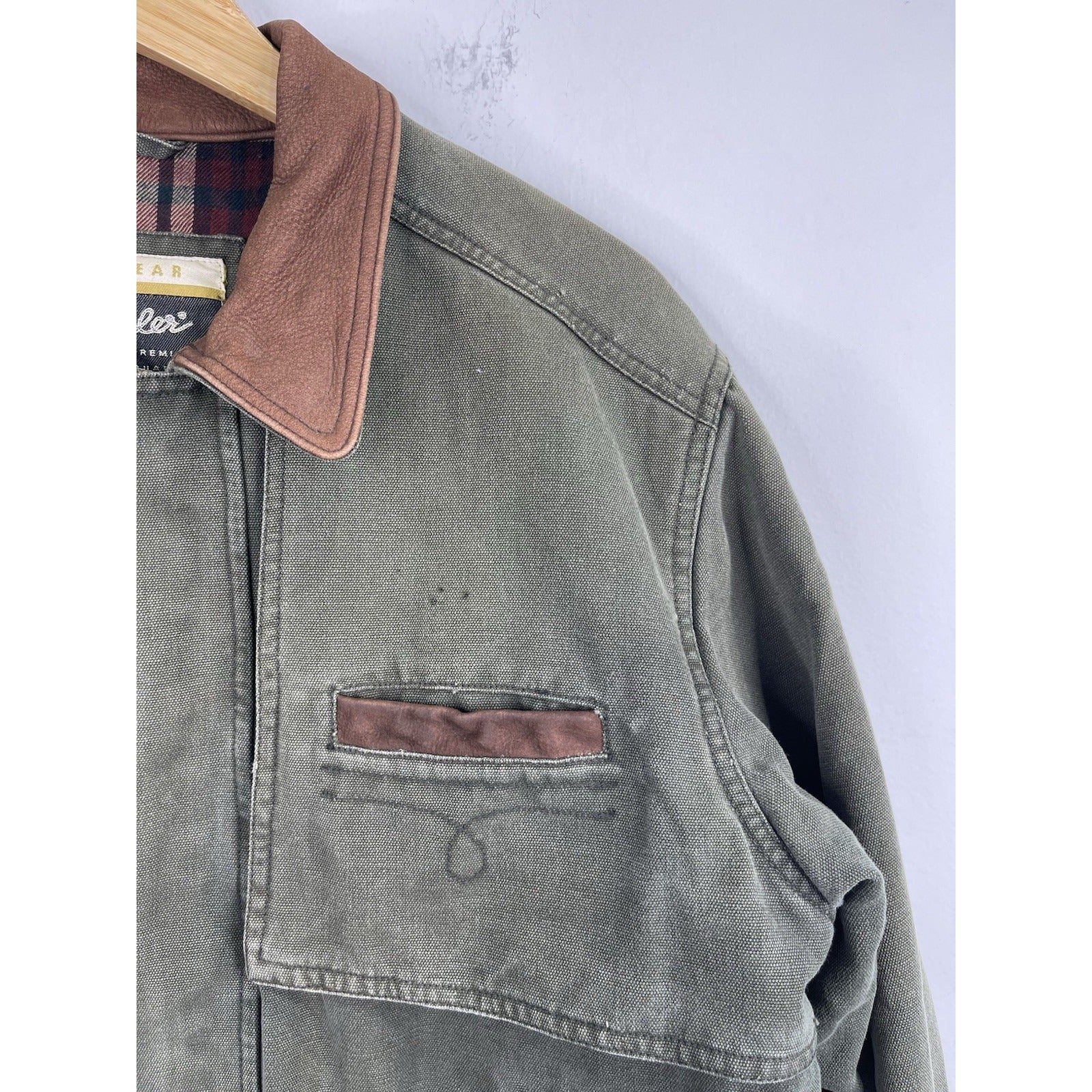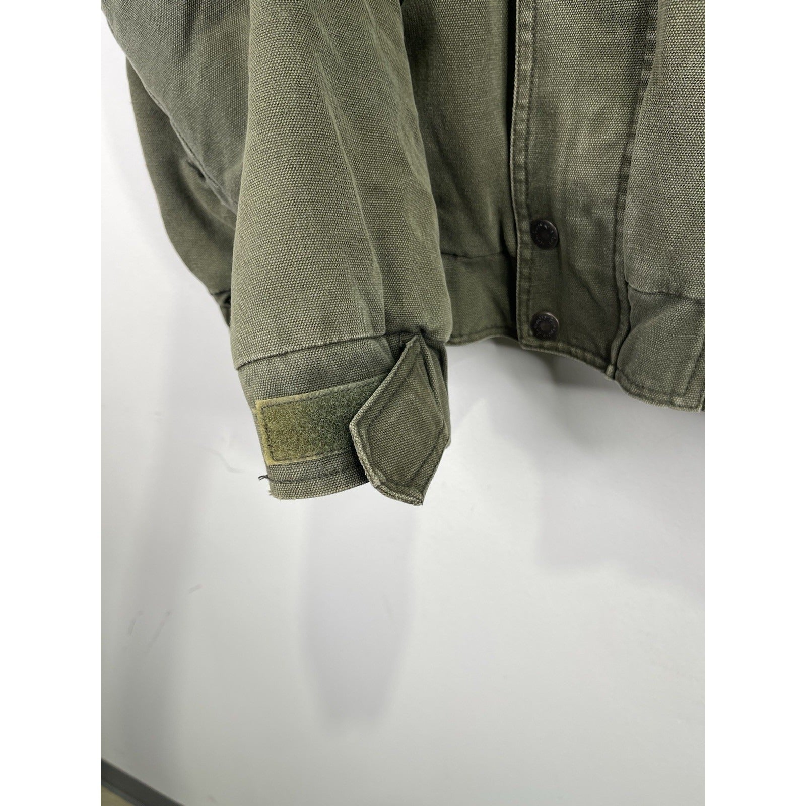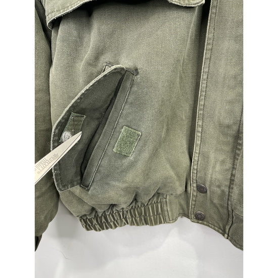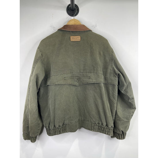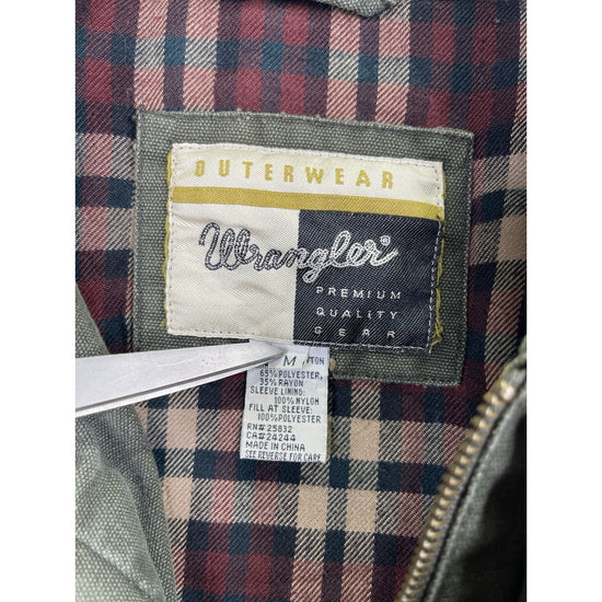 This Men’s Vintage 90s Wrangler Outerwear Olive Green Plaid Lined Bomber Jacket in size Medium is a stylish and versatile piece for any casual or workwear occasion. Made of cotton with a flannel lining, this jacket features a zip closure, embroidered accents, and a bomber style design. With a solid green color and vintage charm, this jacket is perfect for the winter, fall, and spring seasons, offering both comfort and style for activities like riding, walking, and hunting. The Wrangler brand adds a touch of authenticity and quality to this classic outerwear piece.