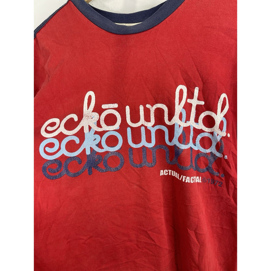 This Men's Vintage Y2k Eckō Unltd Actual/Factual 1972' Red T-Shirt in size L is a classic piece with a graphic print featuring the iconic year 1972. Made from comfortable cotton material, this regular fit shirt is perfect for all seasons and embodies a retro 90s hip hop theme. The crew neckline and easy care features make it a versatile addition to any man's wardrobe, representing a piece of fashion history from the early 2000s.