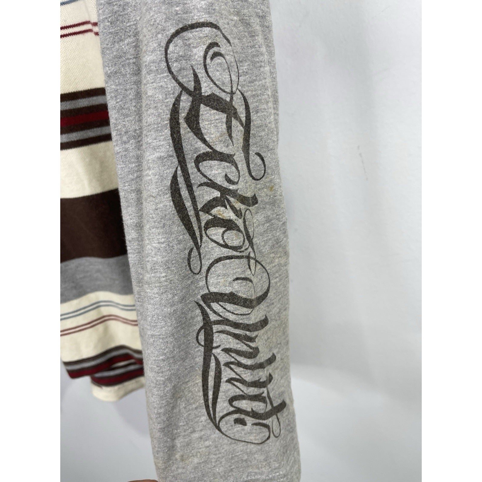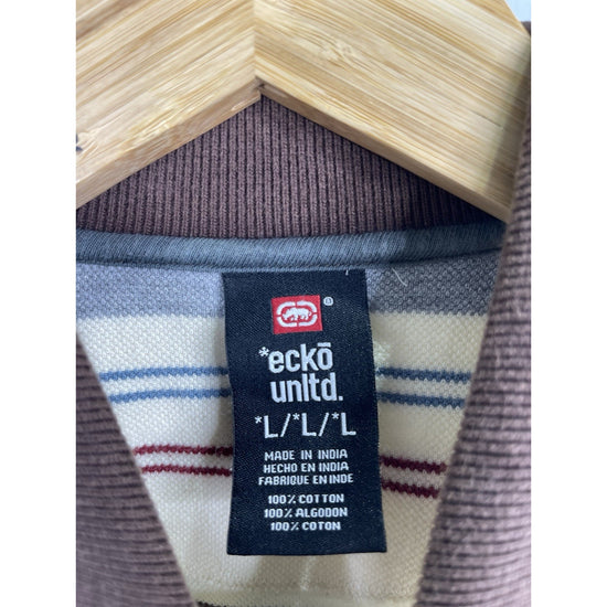 This Men's Vintage Y2K Eckō Unltd Brown Striped Polo Long Sleeve Shirt in size L offers a classic and retro style perfect for those who appreciate 90s hip hop fashion. Made from breathable cotton material, this regular fit polo features a collared neckline and long sleeves, making it suitable for all seasons and various activities such as walking, school, and golf. The brown striped pattern adds a touch of vintage flair to this timeless piece, making it a versatile and stylish addition to any man's wardrobe.