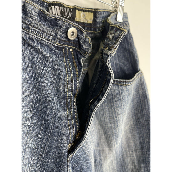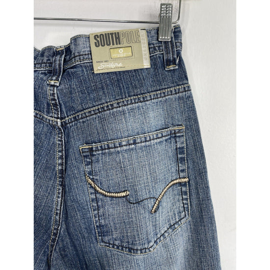 The Men’s Vintage Y2K Southpole Dark Wash Denim Baggy Pants are a stylish and nostalgic addition to any man's wardrobe. Made of cotton denim in a relaxed fit, these wide-leg pants feature a dark wash finish and embody a grunge, hip hop theme from the turn of the century. With a vintage vibe and brand like Southpole, these pants offer a unique and on-trend style for the modern man looking to make a statement with their fashion choices.