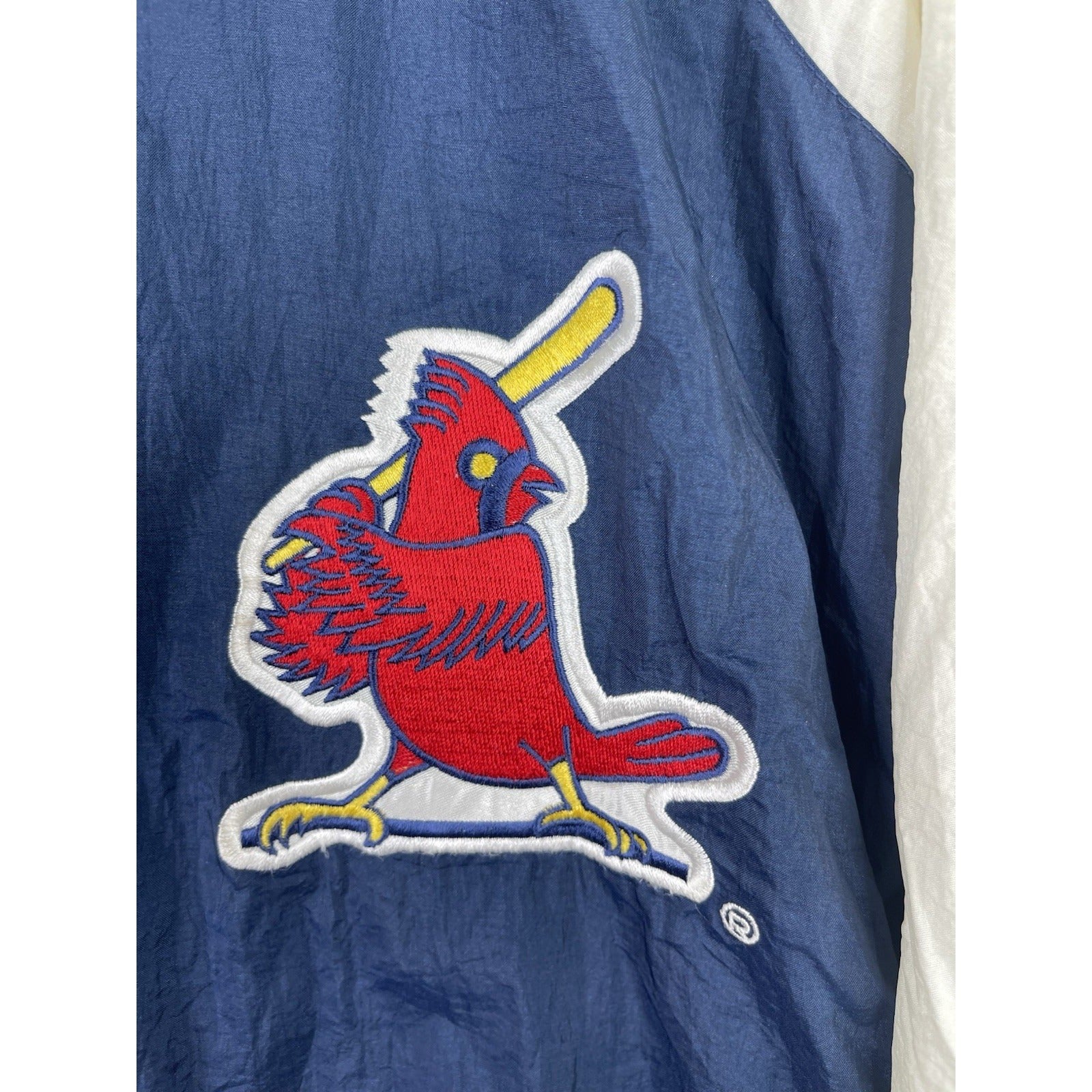 This Men's VTG 80s St Louis Cardinals Pro Motion Felco Hooded Jacket Windbreaker in size S is an officially licensed Major League Baseball (MLB) product featuring the St. Louis Cardinals team. The white jacket is perfect for baseball fans looking to show their team pride during the regular season. Made by Felco, this vintage-style jacket is a must-have for any Cardinals supporter.