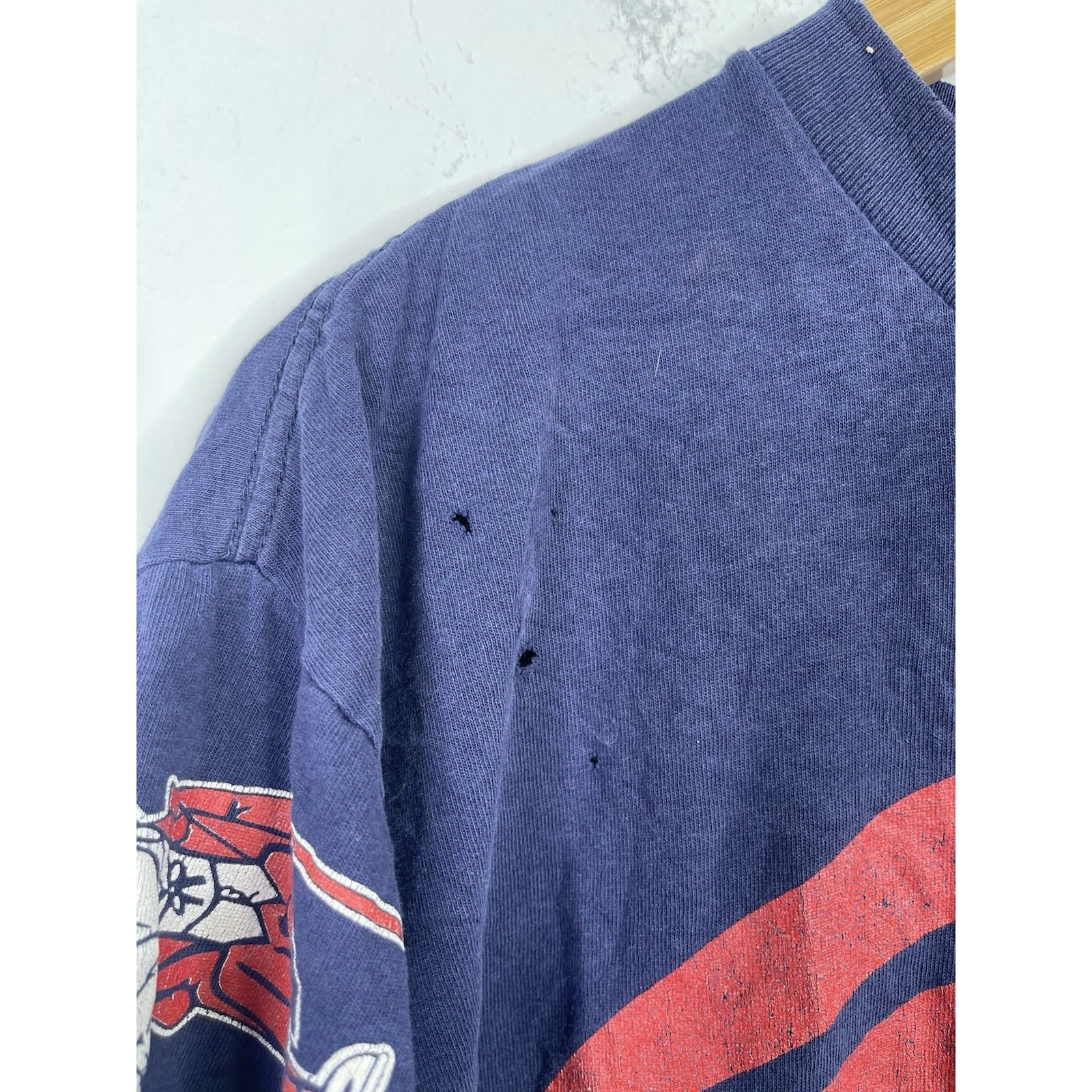 This product is a Men’s VTG Blue Ole Miss Rebels Graphic T-Shirt by The Game, featuring a vintage design from the 90s. The shirt is made of lightweight cotton material with a crew neckline and short sleeves, making it suitable for all seasons. It is in size Large and has a regular fit, perfect for fans of the Ole Miss Rebels looking for a comfortable and stylish shirt to show their team spirit.
