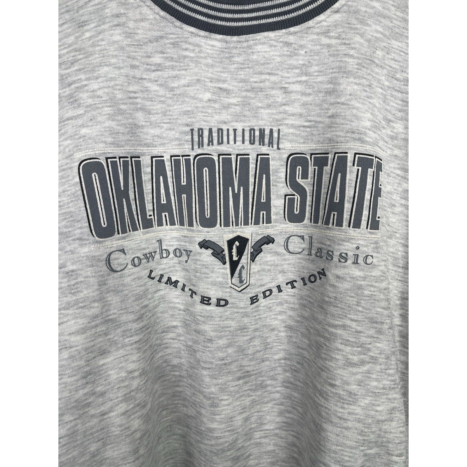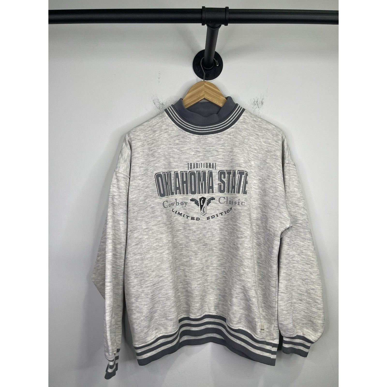 This Men's VTG Traditional Oklahoma State Cowboy Classic Gray Sweatshirt in size L is a stylish and comfortable piece of fan apparel for supporters of the Oklahoma State Cowboys football team. Officially licensed and designed for the regular season, this sweatshirt features the iconic team colors and logo, making it a perfect addition to any fan's wardrobe. Made for men who appreciate both style and team spirit, this sweatshirt is a must-have for any Oklahoma State Cowboys fan looking to stay warm and show their team pride.
