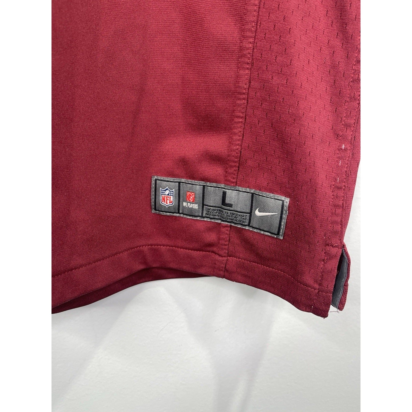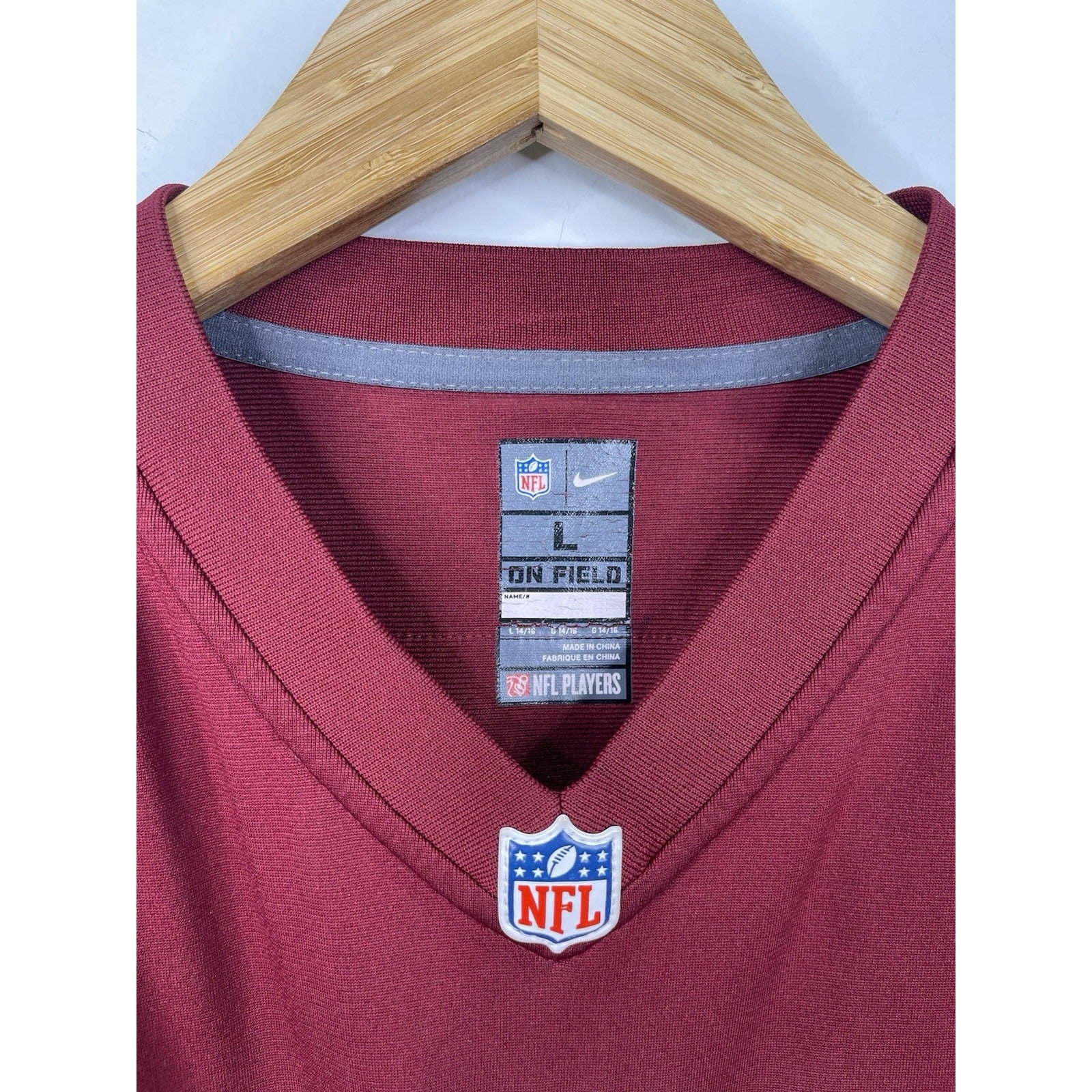This product is a Men's Washington Redskins Robert Griffin III on the field NFL jersey, officially licensed by Nike in size L. The jersey is in the team's signature red color, making it a perfect fan apparel item for supporters of the Washington Redskins. Designed for the regular season, this jersey ensures that fans can showcase their team pride while representing their favorite player, Robert Griffin III, on the field or in the stands.