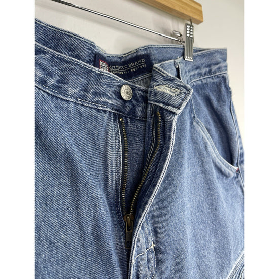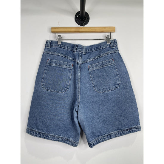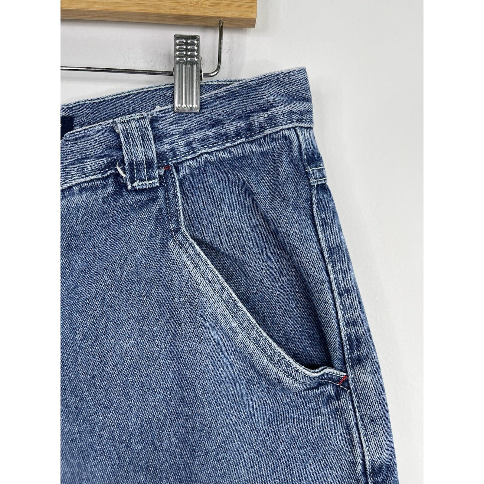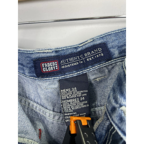 The Men’s Y2K Faded Glory 6 Pocket Blue Denim Jorts are a stylish and versatile addition to any man's wardrobe. Made from durable cotton denim with a light wash, these shorts feature a solid blue color and a retro 90s theme. The flat front design and cargo style make them perfect for casual or workwear occasions, while the six pockets add functionality. With a waist size of 34 inches and an inseam of 9 inches, these jorts are designed for comfort and style.