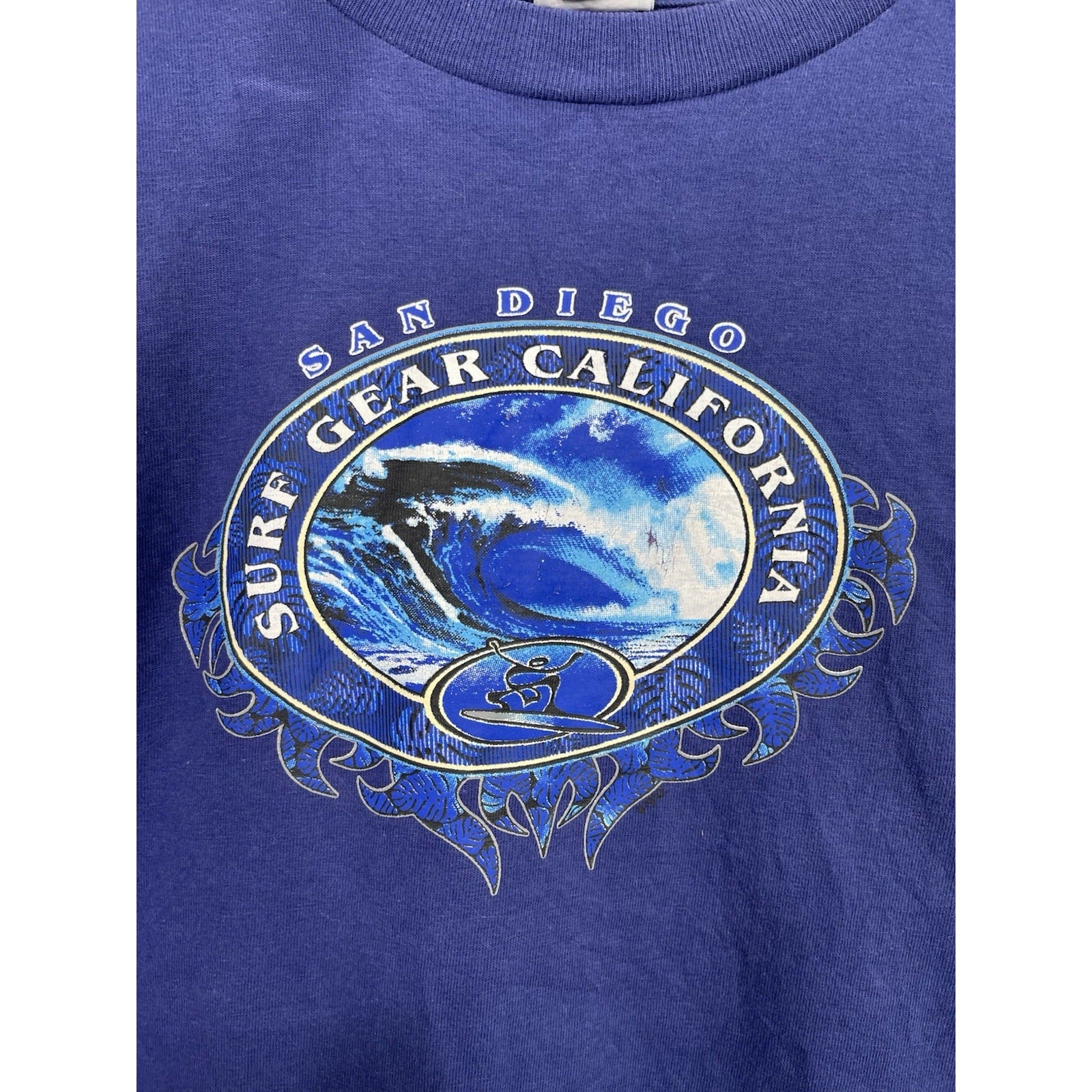 The Men’s Y2k San Diego Surf Gear California Blue T-shirt in size Large is a vintage piece perfect for beach lovers and surf enthusiasts. Made of soft cotton material, this crew neck t-shirt features a solid blue color with a California theme, making it a stylish choice for all seasons. The regular fit and short sleeves offer comfort and ease of movement, while the beach character adds a fun and laid-back vibe to any outfit. Ideal for a casual day out in the sun, this t-shirt is a great addition to any man’s wardrobe.