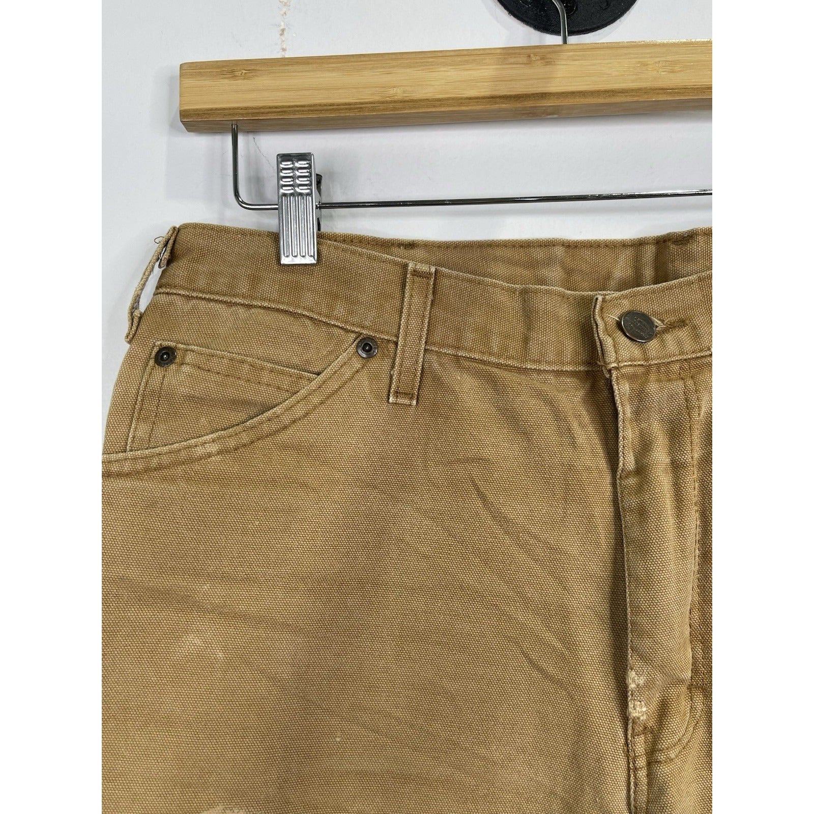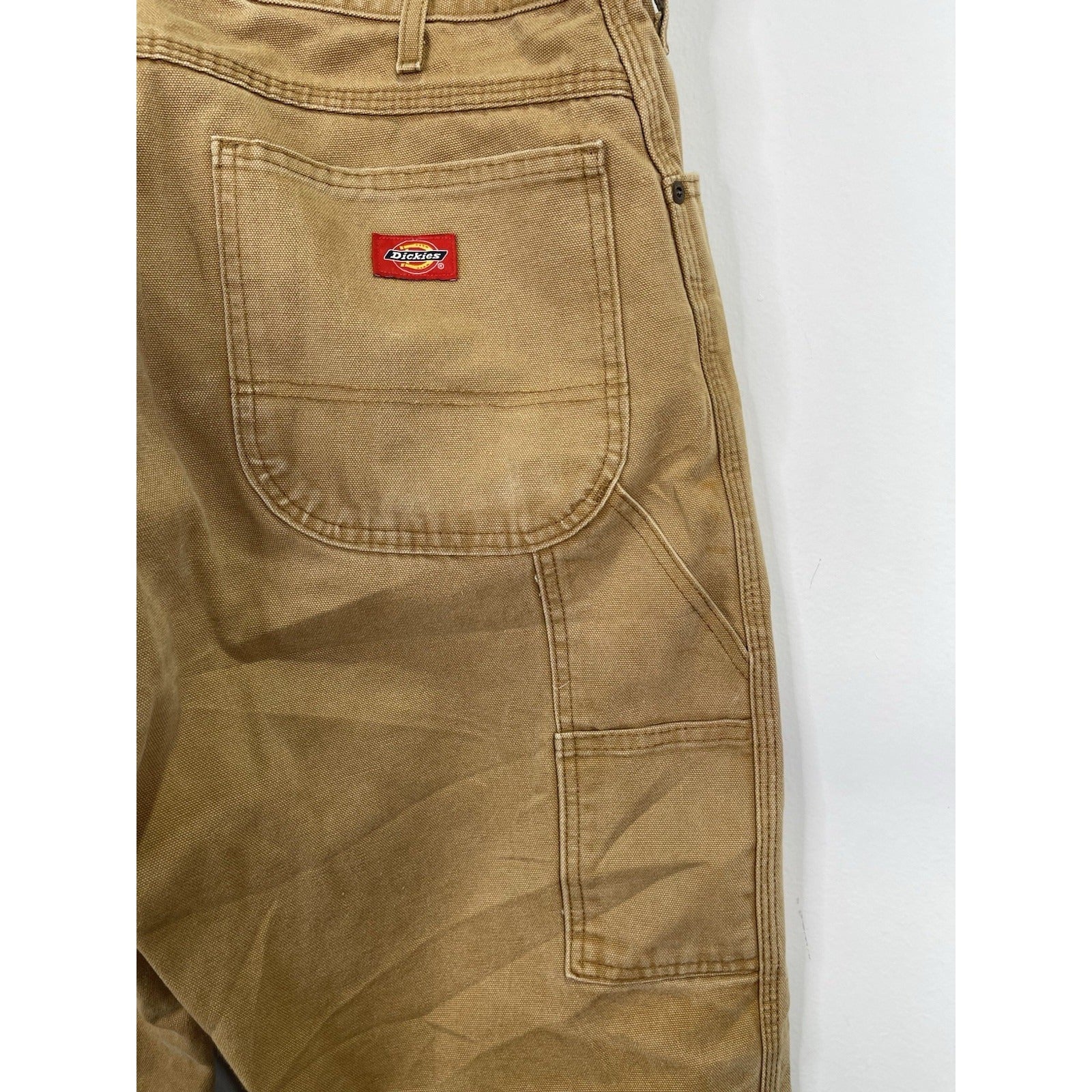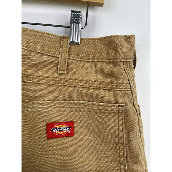 The Mens Dickies Khaki Carpenter Work Pants 34x30 are a durable and stylish option for men looking for comfortable workwear. Made of cotton canvas fabric with a flat front design, these pants feature a zipper and button closure, as well as pockets for added convenience. The regular fit and straight leg style offer a classic and practical look, perfect for any work occasion. Dickies is a trusted brand known for quality and reliability, making these pants a reliable choice for the modern man.