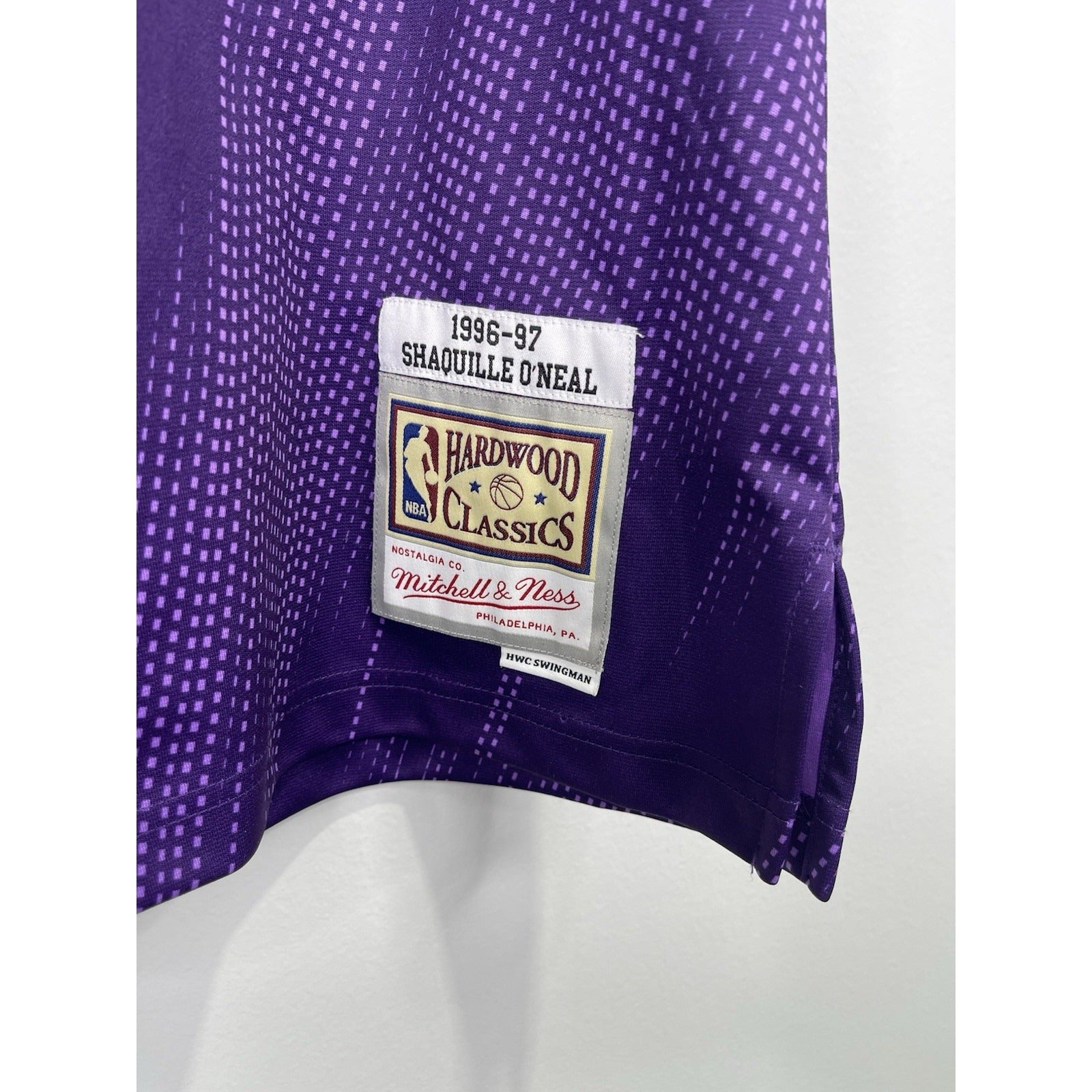 The product is a Mitchell & Ness LA Lakers Shaquille O'Neal monochrome 1996-1997 swingman jersey in size M. The jersey features the iconic purple color of the Los Angeles Lakers and is a must-have for any fan of the National Basketball Association (NBA). Made for men, this jersey represents the legendary player Shaquille O'Neal during the regular season. Perfect for showing off team spirit and commemorating one of the greatest players in basketball history.