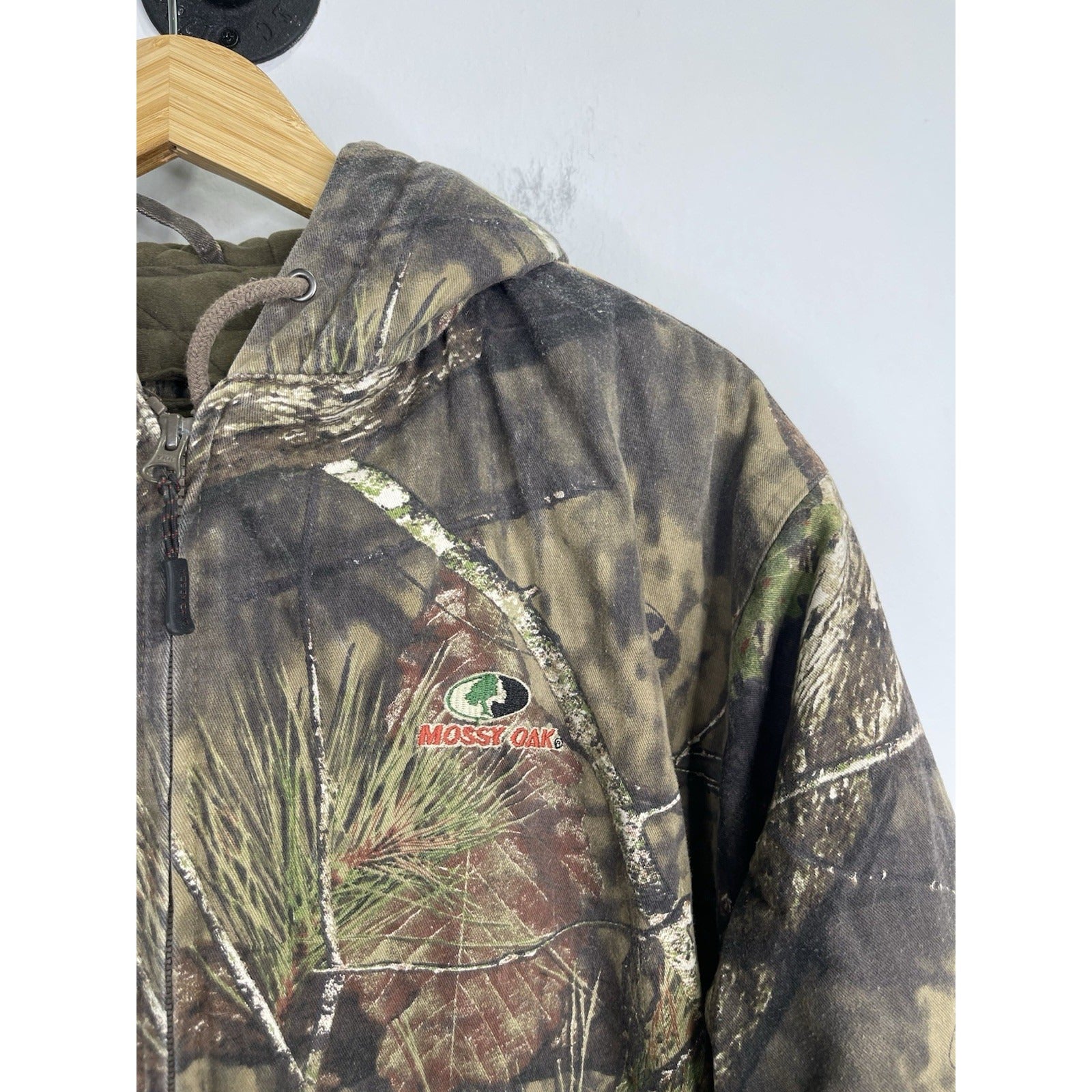 The Mossy Oak Break Up Country Men's Camouflage Hunting Zip Up Hoodie in size XL is a stylish and functional piece of activewear perfect for the outdoors. Made of polyester fleece, this hoodie features a long sleeve, zip closure, and hood for added warmth and comfort. The camouflage pattern adds a rugged touch, while the multicolor design adds a pop of personality. Machine washable for easy care, this hoodie is ideal for hunting activities in the winter, fall, or spring seasons. Perfect for men who appreciate quality and style in their clothing choices.