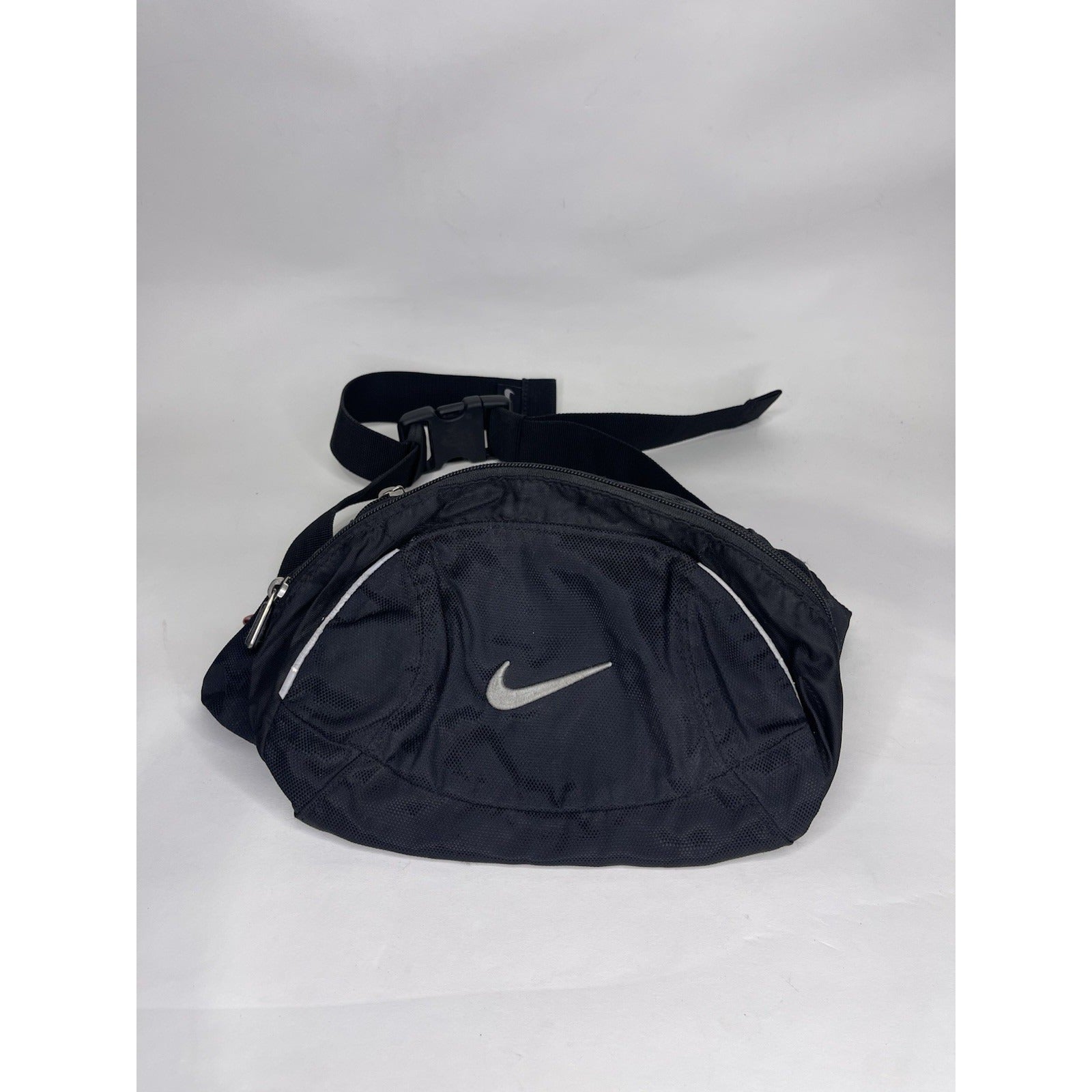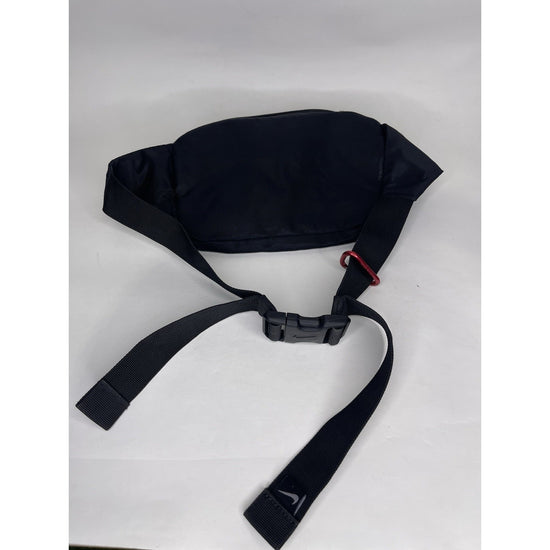 The Nike Black Swoosh Fanny Pack Crossbody is a medium-sized nylon bag designed for outdoor sports and runners. With a sleek solid black color and the iconic Nike Swoosh model, this crossbody bag offers a convenient and stylish way to carry your essentials. The bag features a zip closure, a medium size with a width of 13 inches and a height of 9 inches, making it perfect for on-the-go use during outdoor activities. Perfect for men who appreciate quality and performance in their accessories.