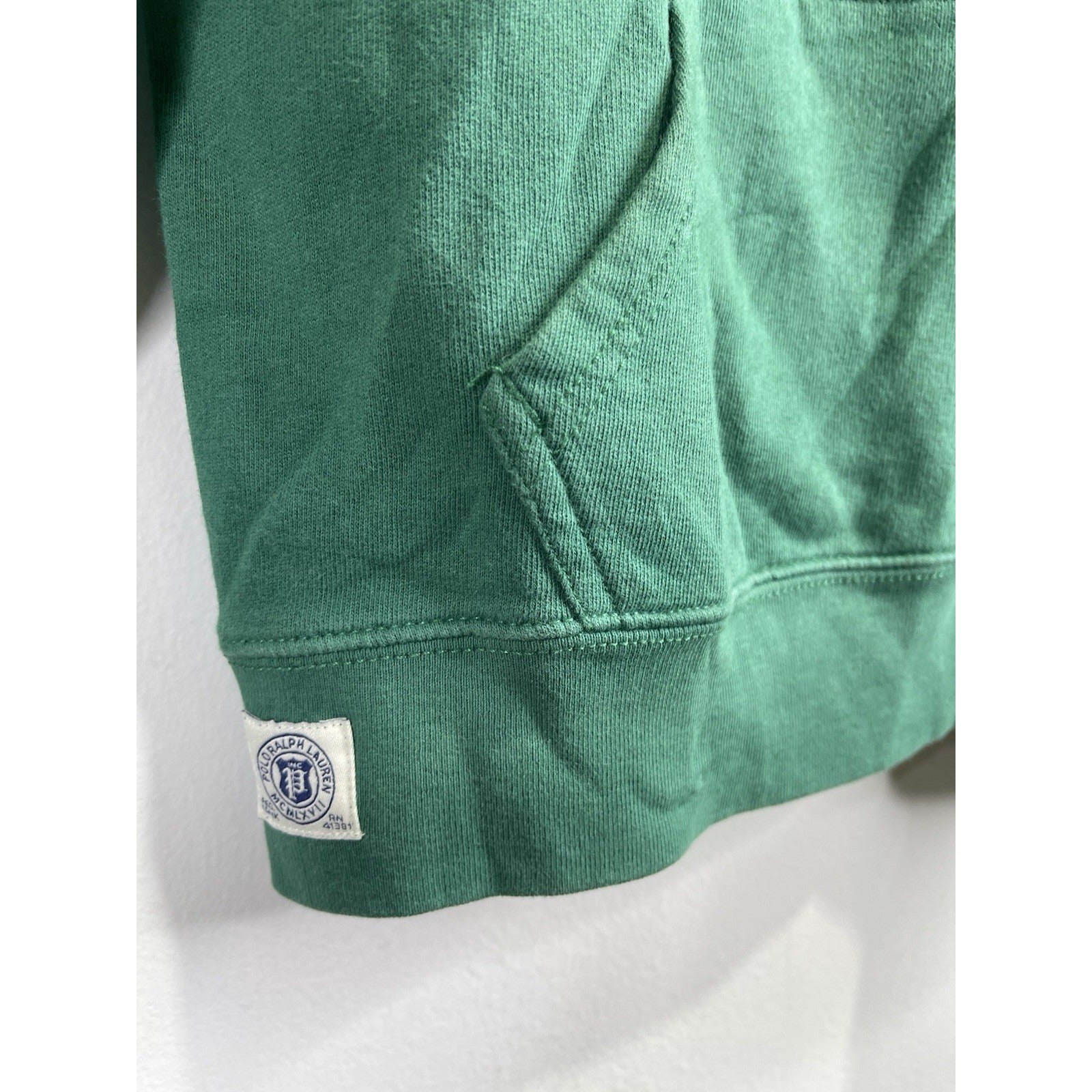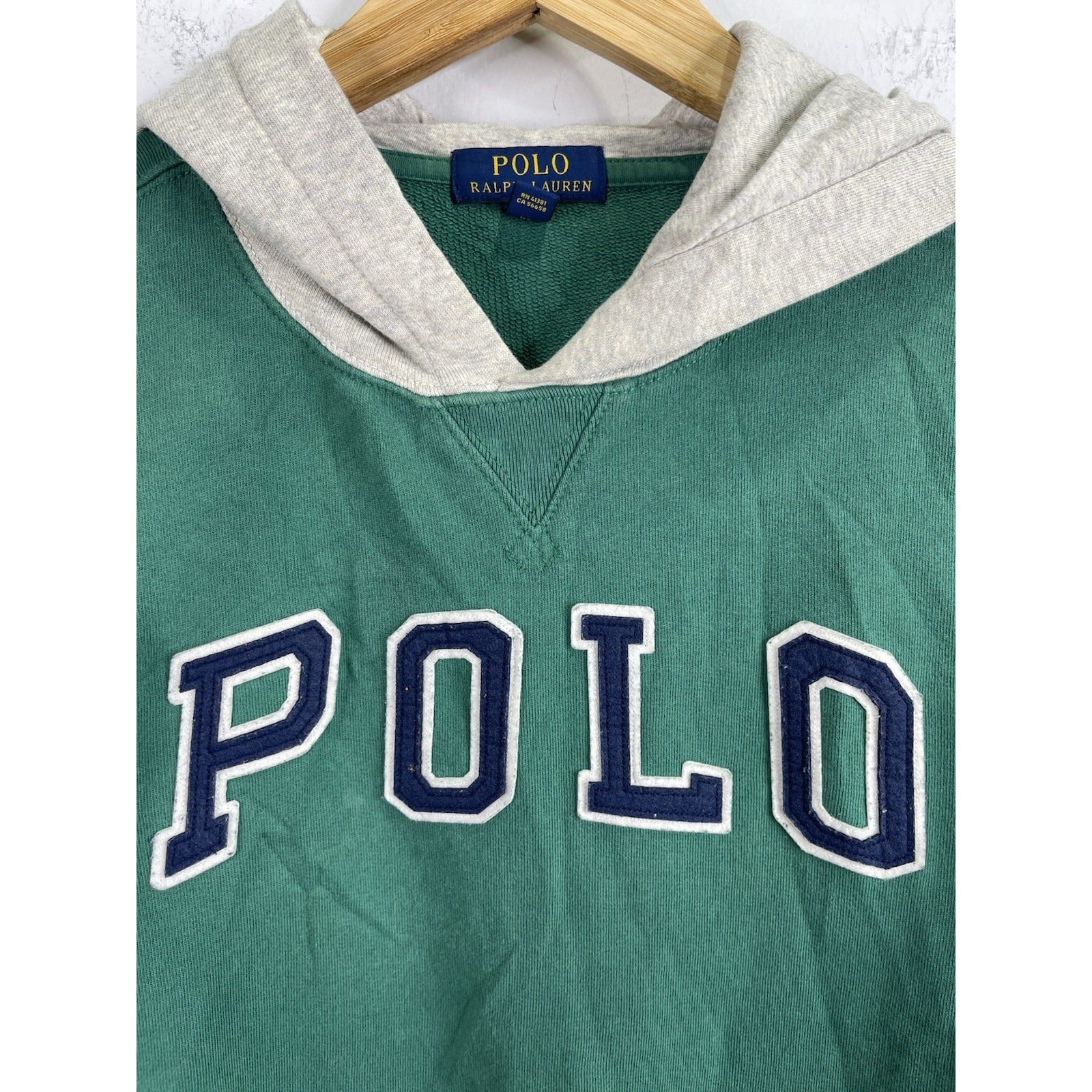 The Polo Ralph Lauren Green Hoodie with Yellow Stripe Accents in size Youth L 14/16 is a stylish and comfortable addition to any boy's wardrobe. Made from cozy fleece fabric, this pullover hoodie features a hood and long sleeves, perfect for the cooler seasons of winter, fall, and spring. The green color with yellow stripe accents adds a fun and playful touch, while the Polo Ralph Lauren logo accents the design. Machine washable for easy care, this hoodie is ideal for casual occasions and everyday wear.