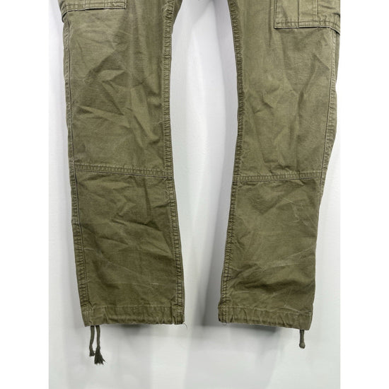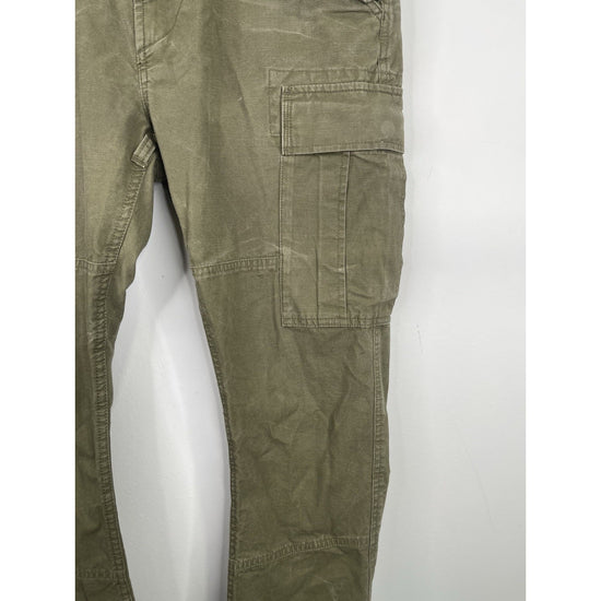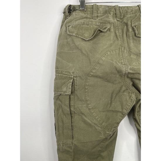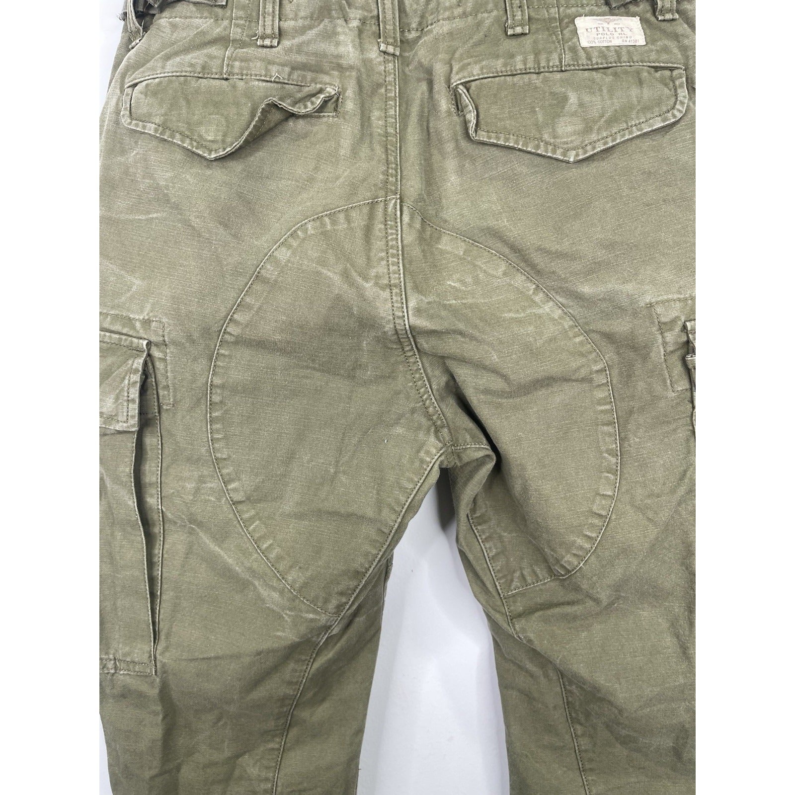 The Polo Ralph Lauren Utility Surplus Chino Cargo Pants in olive are a classic fit men's pant designed for versatility and functionality. Made from cotton with a canvas fabric type, these pants feature a flat front and tapered leg style. The cargo style adds practicality with multiple pockets, including a button and strap accents. The green color and army/workwear theme make them perfect for travel, casual outings, or workwear occasions. With a zip closure and adjustable waist, these pants offer comfort and style for the modern man.