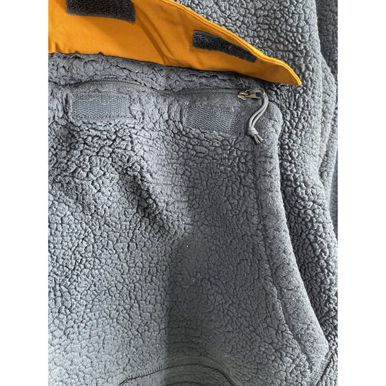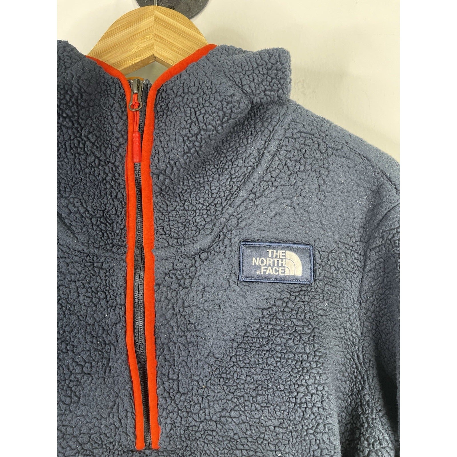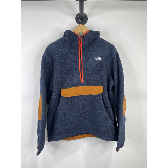 The North Face Men's Sherpa Quarter Zip Pullover in size Large is a stylish and cozy jacket perfect for cool weather. Made of polyester fleece, this pullover features a zip closure and a sherpa style design. The blue color adds a pop of color to your wardrobe, while the polyester lining ensures comfort and warmth. This versatile piece can be worn for outdoor activities or casual everyday wear.