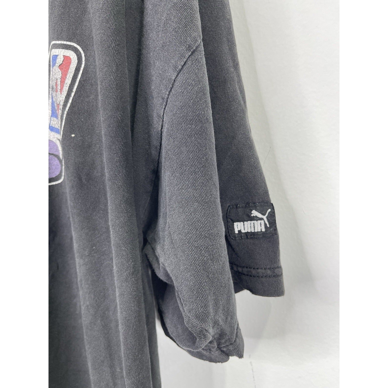 The product is a vintage men's Puma LA Lakers NBA Finals shirt from the 2000s in size XL. The shirt features Kobe Bryant, a legendary player for the Los Angeles Lakers in the NBA. Made in Honduras, it is a classic piece for basketball fans and collectors alike, showcasing the team's colors and iconic designs from the playoffs. Perfect for any fan wanting to represent their favorite NBA team and player in style.