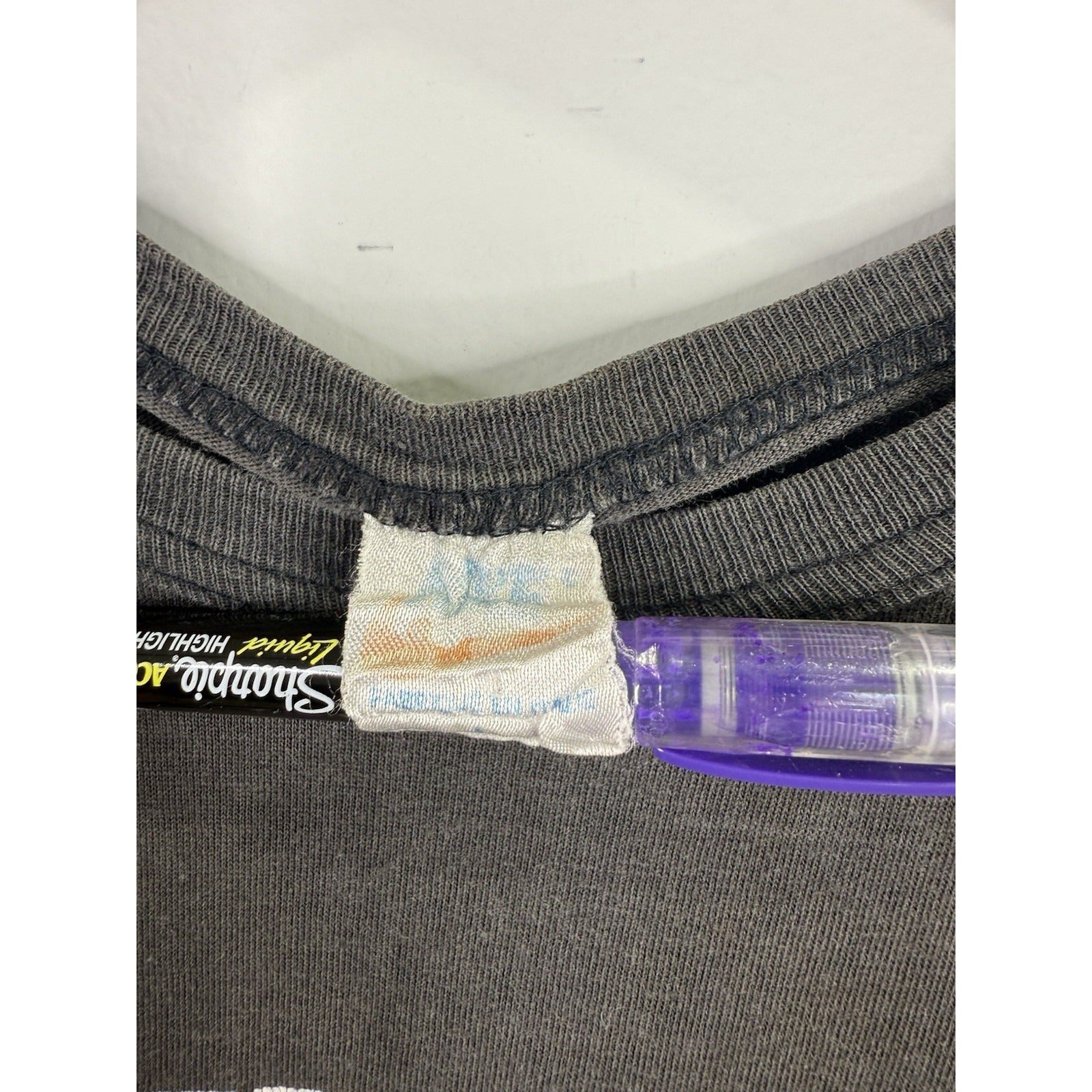 The product is a vintage 80s Nike T-shirt in size L, featuring a classic black color with short sleeves. This regular fit T-shirt is perfect for men who appreciate retro fashion from the 80s era. Made in Italy, this vintage Nike shirt embodies nostalgia and a timeless style that is sure to make a statement in any wardrobe.