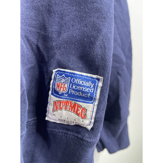 The product is a vintage 90's Nutmeg Team NFL Chicago Bears sweater in size L. This blue sweater features the iconic Chicago Bears team logo, making it a must-have for any fan of the National Football League. The unisex adult design and classic football theme make it a versatile and stylish piece for showing off team pride during game days or casual outings.