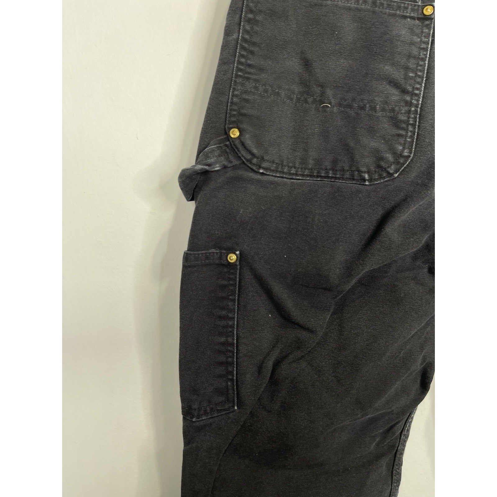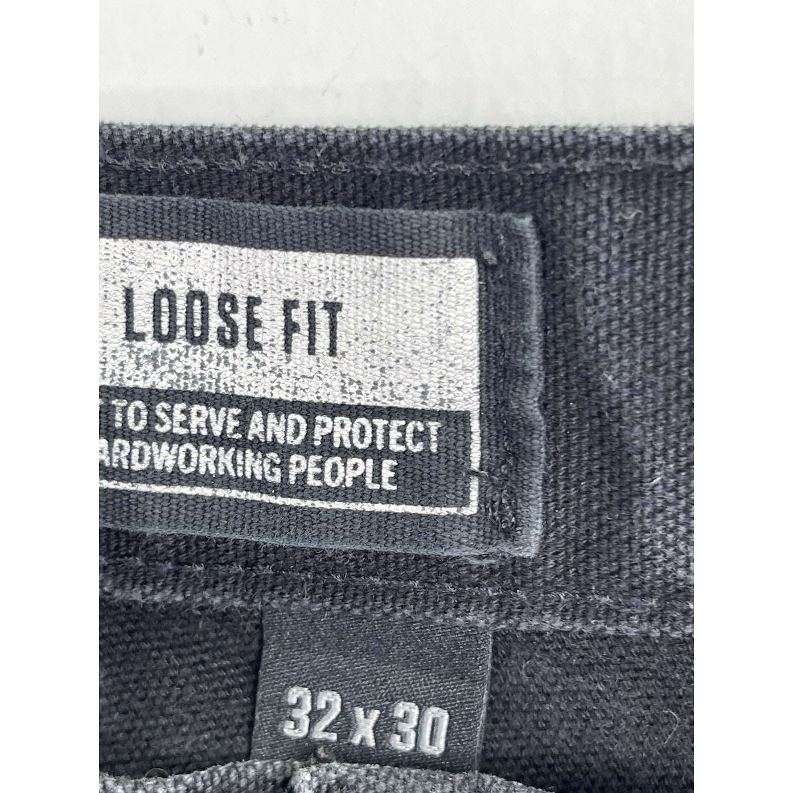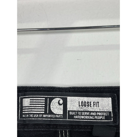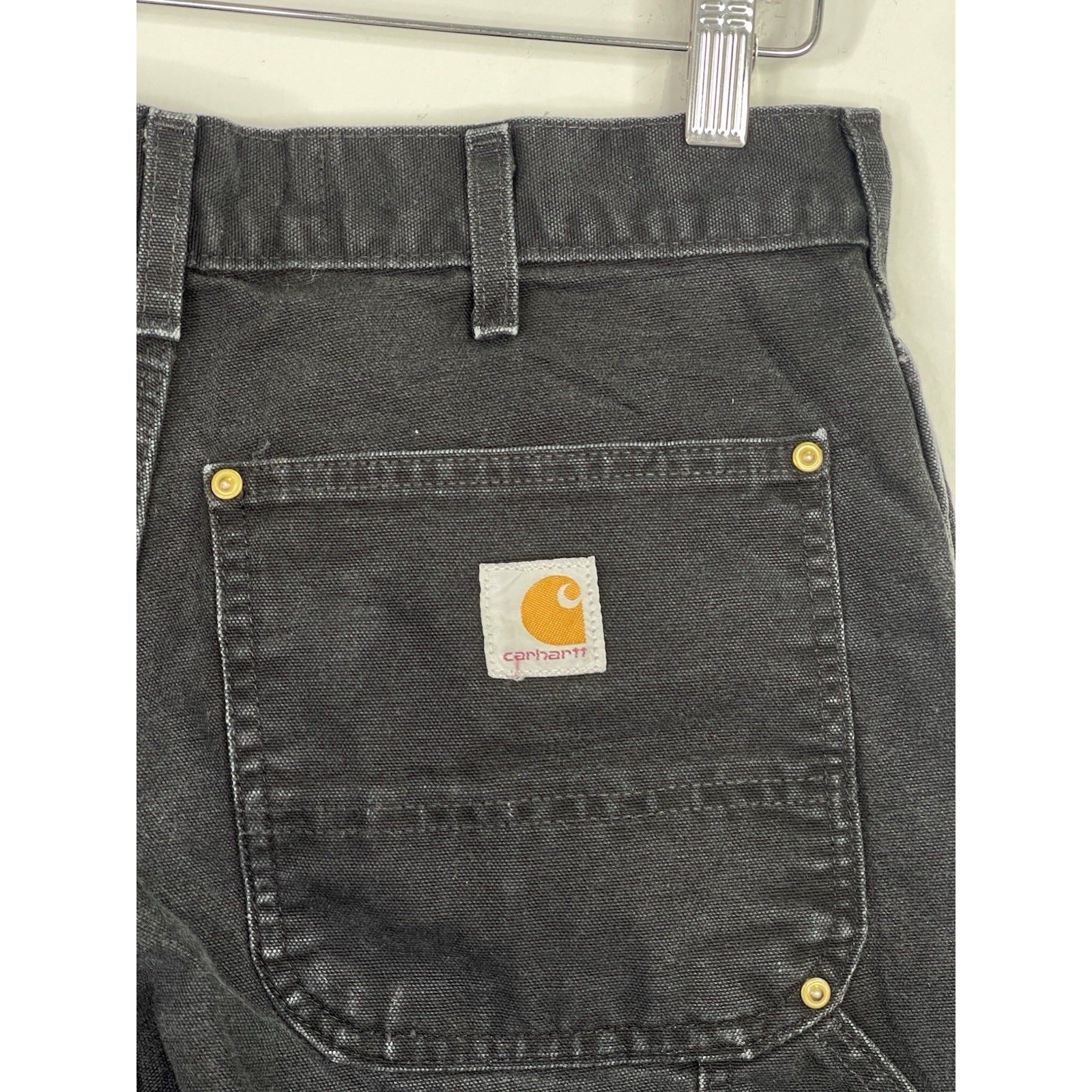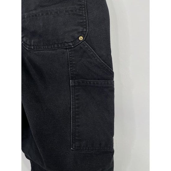 These Vintage Carhartt Black Double Knee Carpenter Pants 32x30 are a durable and stylish addition to any wardrobe. Made from cotton canvas fabric, these loose fit pants feature a straight leg style with a pleated front and a 30-inch inseam. The black color and vintage design give them a timeless look, while the comfortable and functional features, like pockets and a logo accent, make them perfect for both casual and workwear occasions. With a waist size of 30 inches and a size type of regular, these pants are a versatile and classic choice for any man.