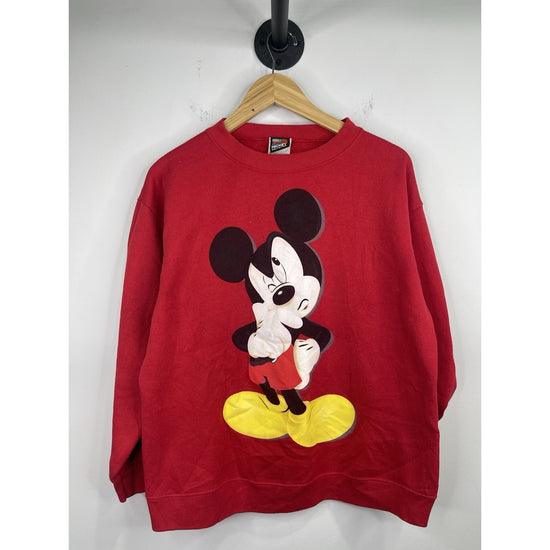 The Vintage Disney Sweatshirt is a small 90s Mickey Mouse Funny Face design with a boxy classic fit, perfect for men who enjoy a nostalgic and playful style. Made of a comfortable fleece fabric with a crew neck and long sleeves, this pullover sweatshirt features a graphic print of Mickey Mouse, making it a fun and unique addition to your wardrobe. The sweatshirt is suitable for all seasons, especially winter and fall, and is machine washable for easy care. Perfect for a casual day out or for lounging in style.