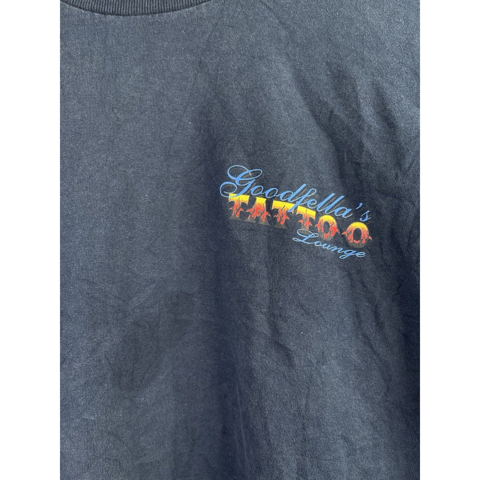 This Vintage Goodfella’s Tattoo Lounge Orange County Blue Long Sleeve T-shirt in size XL is a stylish and unique addition to any man's wardrobe. Made from cotton, it features a regular fit with a crew neckline, making it comfortable and easy to wear. The blue color and tattoo theme give it a vintage feel, perfect for those who appreciate retro aesthetics. Perfect for casual everyday wear, this t-shirt from Murina is a must-have for any man looking to make a statement with their clothing.