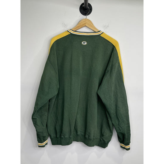 This Vintage Green Bay Packers Sweatshirt is a must-have for any NFL football fan. Made from a blend of polyester and cotton, this crew neck sweatshirt features an embroidered team logo and comes in size XL. The green color and 90s sports theme make it a stylish choice for both casual wear and outdoor activities. With its heavyweight design and all-season versatility, this pullover sweatshirt is perfect for fans looking to show their support for the Green Bay Packers in style.