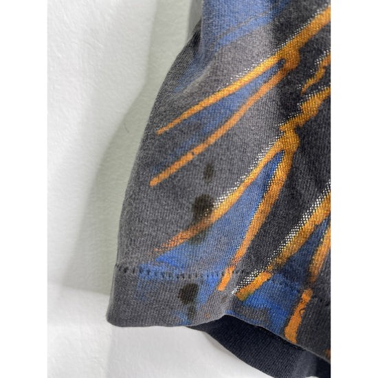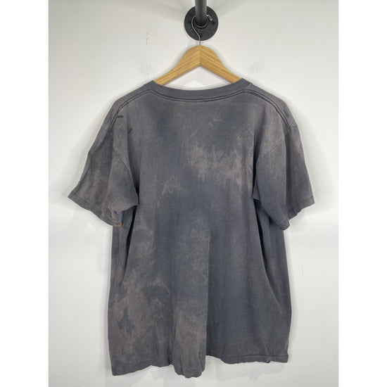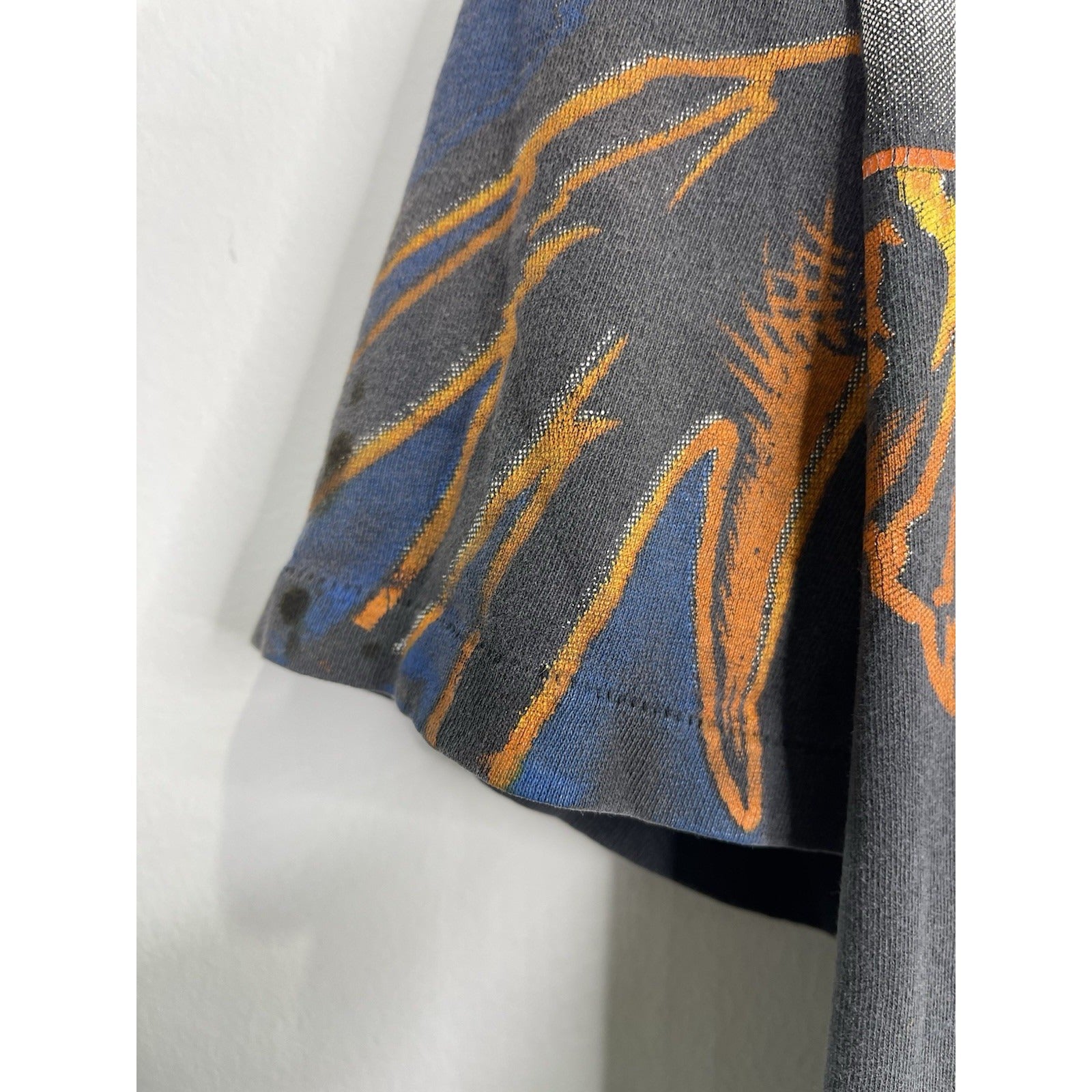 The Vintage Harley-Davidson 1995 Eagle AOP T-shirt in size X-Large features a classic graphic print with an eagle design, making it a unique and stylish addition to any man's wardrobe. Made of comfortable cotton material with a knit fabric type, this short-sleeved t-shirt has a crew neckline and is machine washable for easy care. With its vintage appeal and 90s theme, this shirt is perfect for those who appreciate biker and motorcycle culture, as well as animal-themed apparel. The logo accents and double-sided feature add to the overall biker-inspired look of this iconic Harley-Davidson shirt.