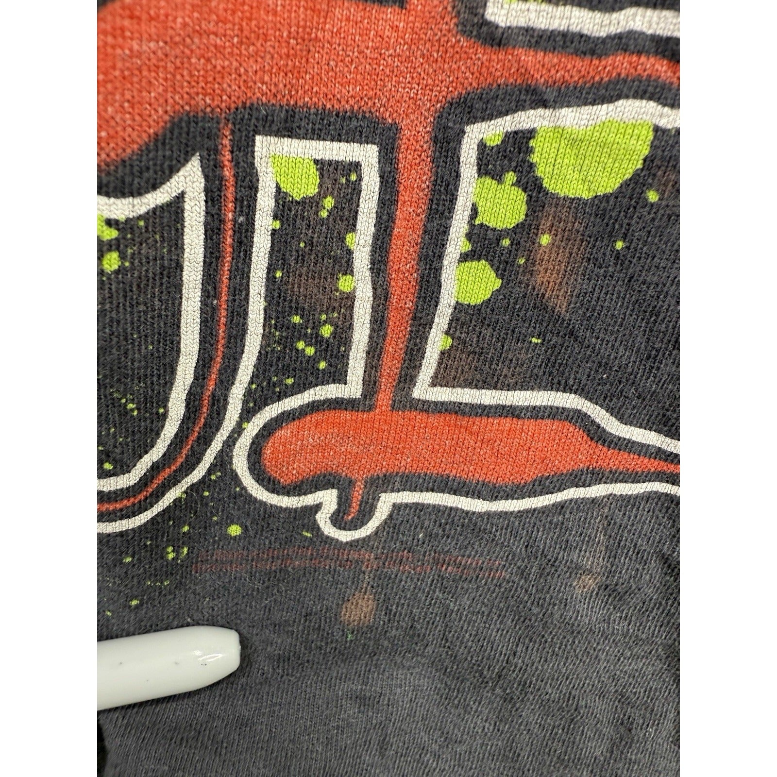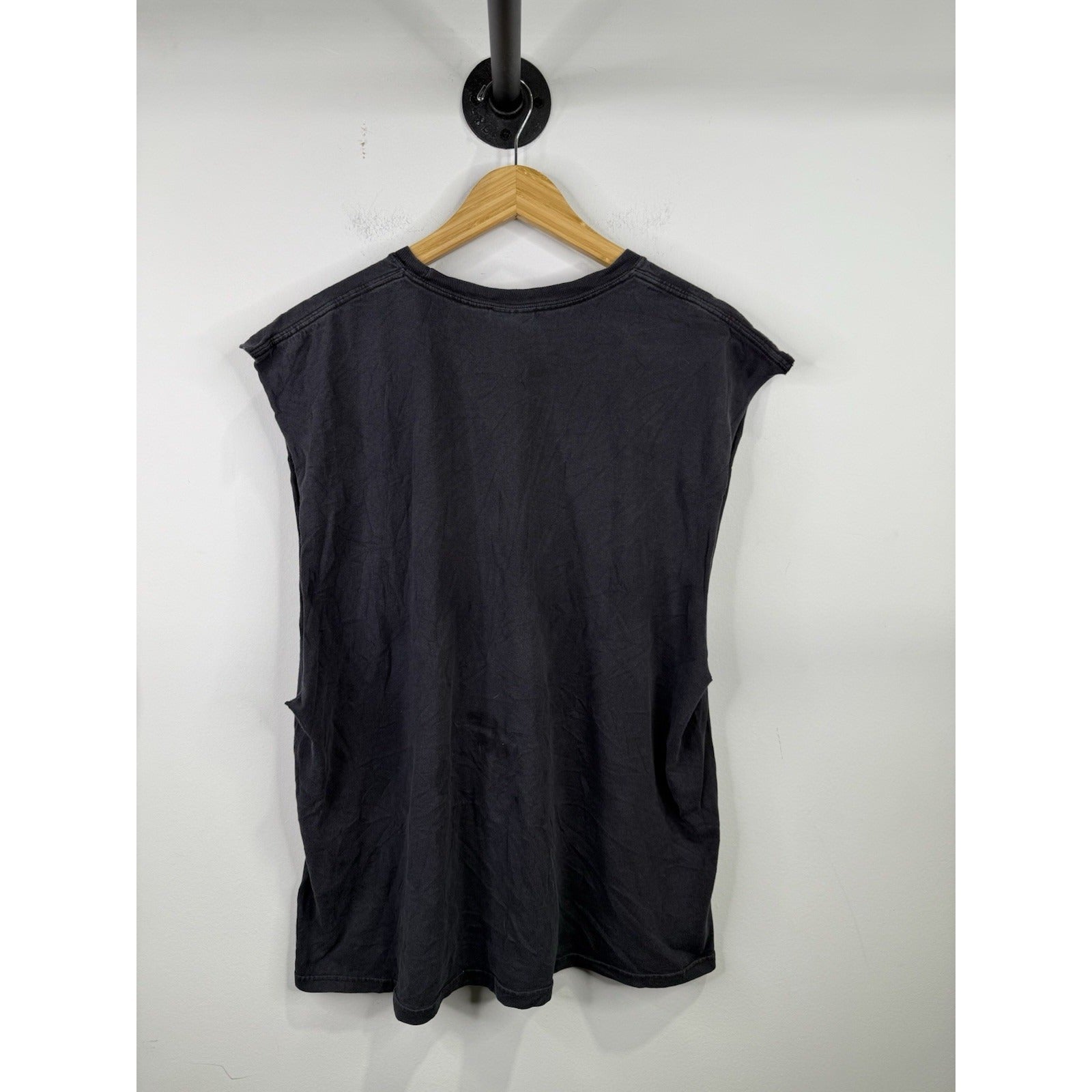 This Vintage Killswitch Engage Cutoff T-shirt in size XL is a sleeveless black t-shirt manufactured between 2000-2009. The shirt features the band's logo and is perfect for fans of rock music and the band Killswitch Engage. Made by Hanes, this regular fit shirt is a stylish addition to any man's wardrobe, showcasing a piece of music history from the early 2000s.