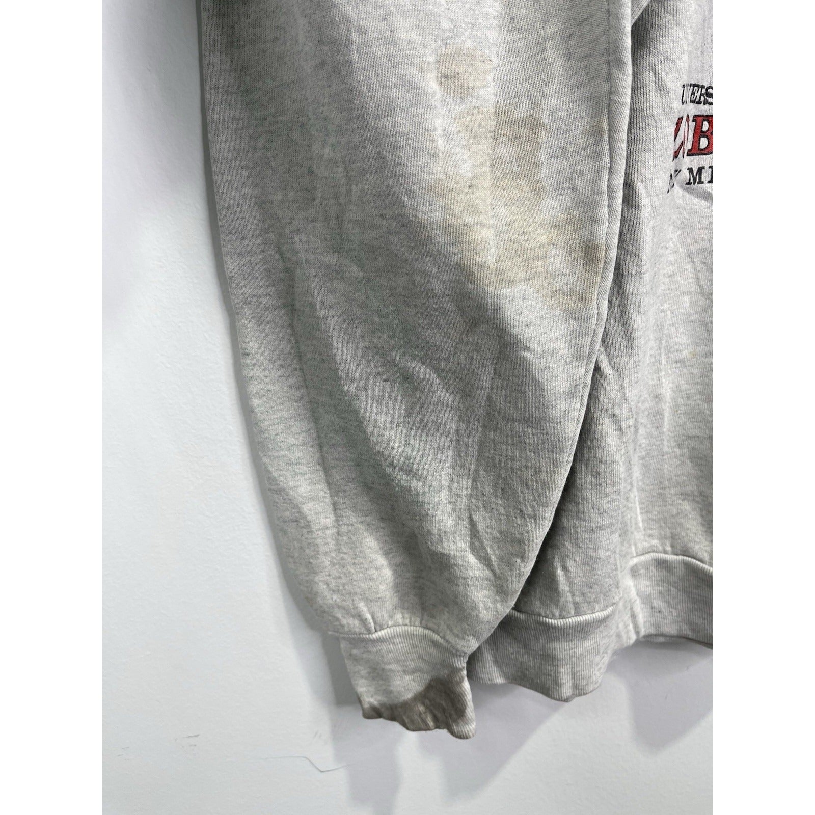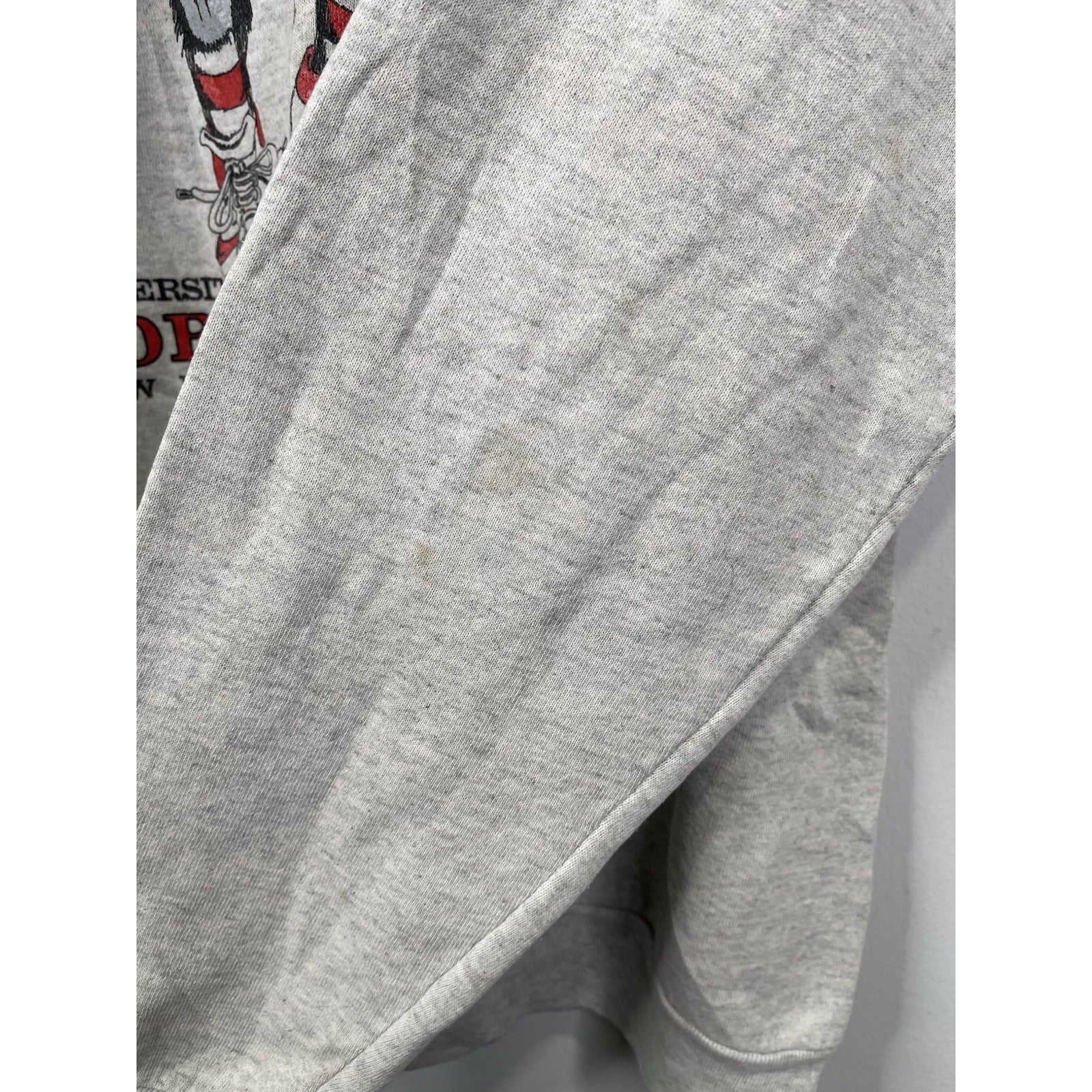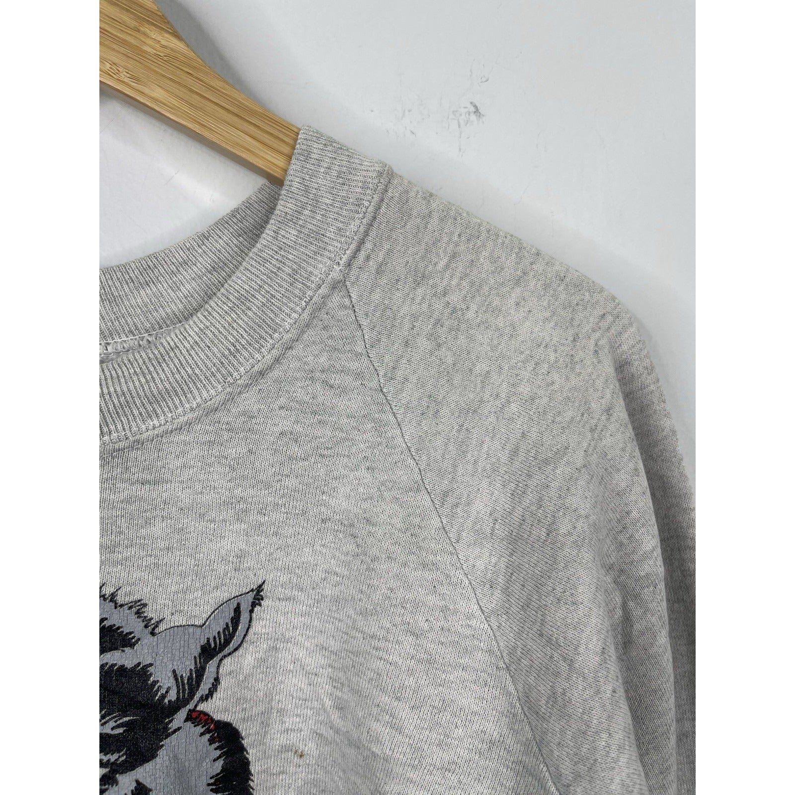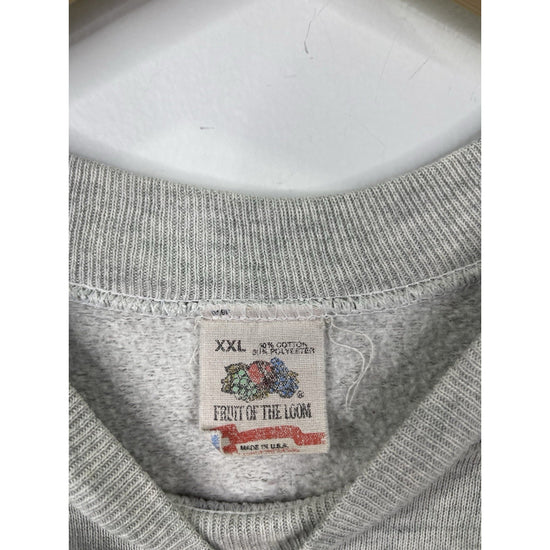 This Vintage Men’s 90s University Of New Mexico Lobos Graphic Sweatshirt in size XXL is a classic piece perfect for any fan of the team or anyone who loves a retro style. Made of heavyweight cotton knit, this pullover sweatshirt features a crew neckline and long sleeves, making it comfortable for all seasons. The grey color and graphic print of the grey wolf design on the front give it a unique and nostalgic look, ideal for activities like gym training, walking, or basketball. Created by Fruit of the Loom, this vintage sweatshirt captures the essence of the 90s era with its regular fit and timeless design.