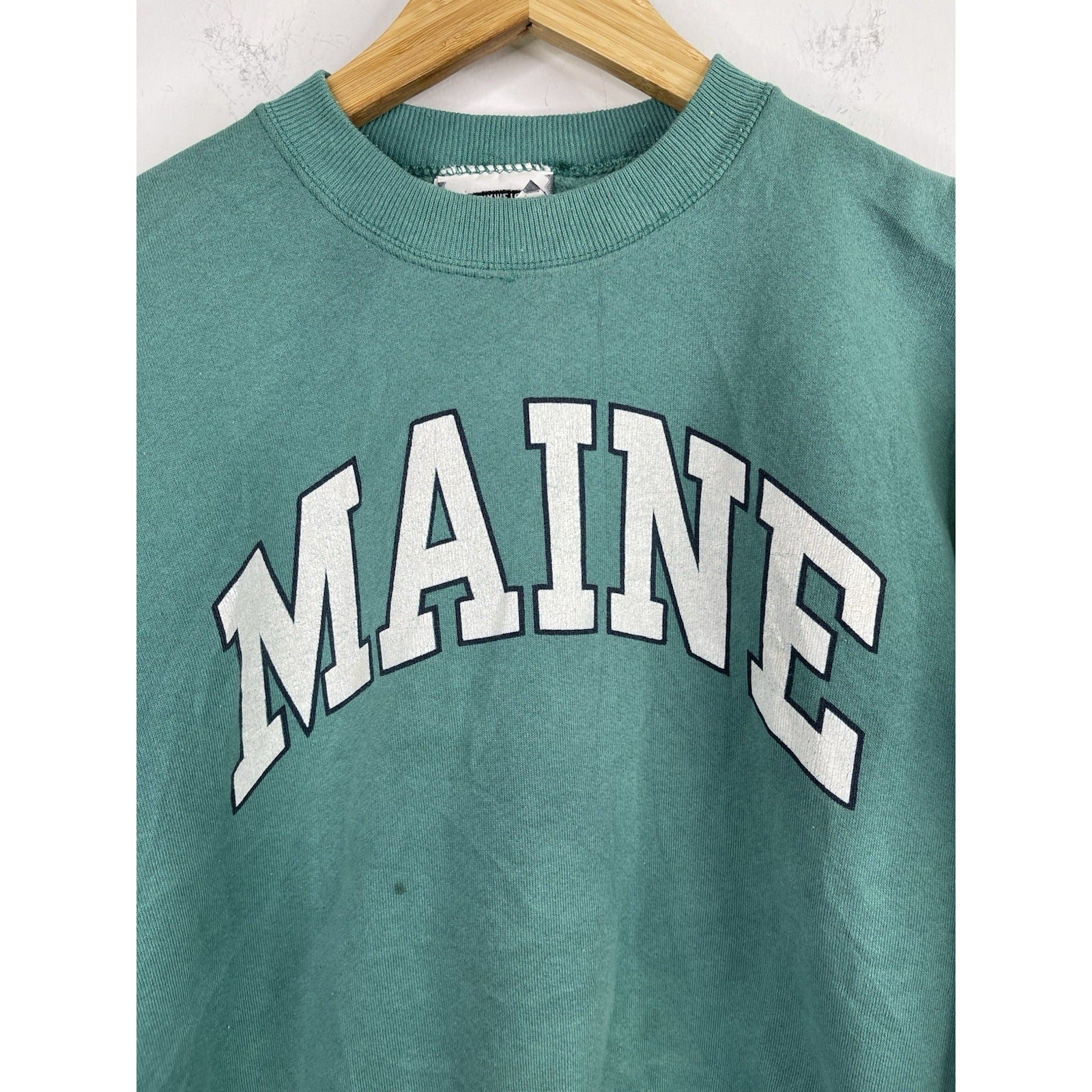 The Vintage Men’s Heavyweight Lee Brand Blue Cyan Maine Sweatshirt is a classic piece with a retro graphic print, featuring the iconic Lee brand logo. Made from heavyweight cotton knit material, this pullover sweatshirt is perfect for activities like gym training, walking, and cross-training. The blue color and crew neck design make it a versatile and stylish addition to any man's wardrobe, particularly for those who appreciate 90s USA-themed fashion. With its regular fit and long sleeves, this sweatshirt provides both comfort and style for everyday wear.
