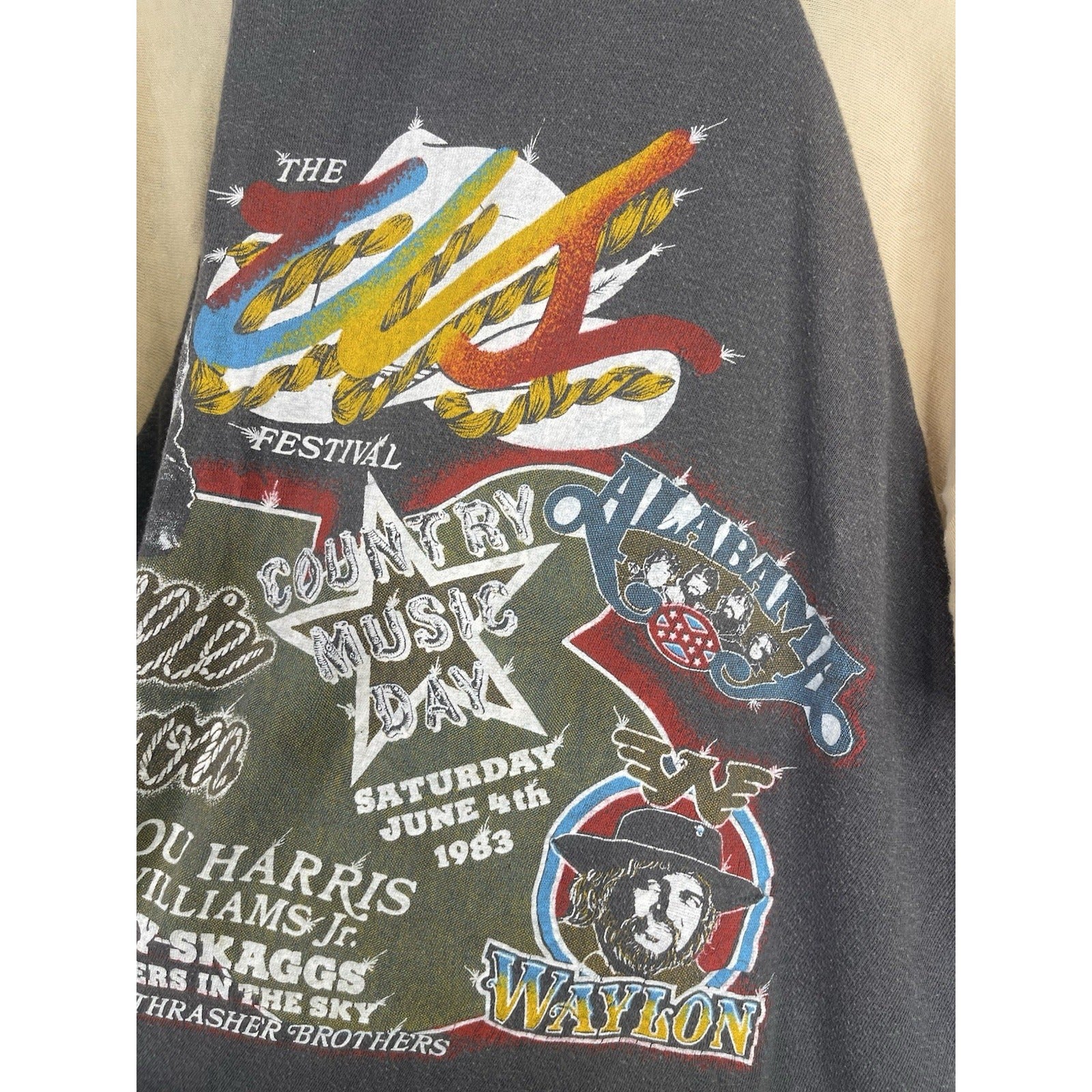 The Vintage Rare 1983 US Festival Raglan Jersey T-Shirt in size Small is a unique and sought-after piece of music memorabilia. This original shirt, made in the country of Jersey, captures the nostalgia and excitement of the music industry from that era, making it a valuable addition to any music enthusiast's collection. Its rarity and vintage appeal make it a standout item for collectors looking for authentic pieces of music history.