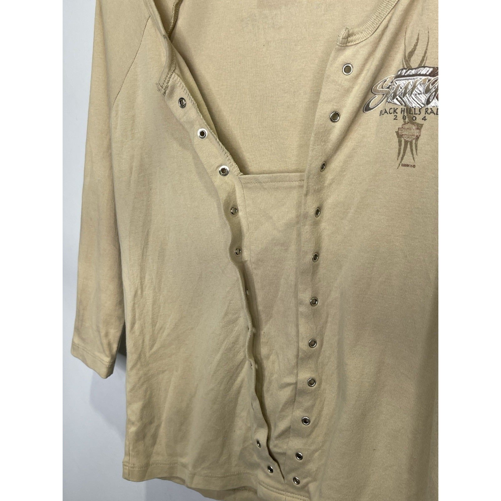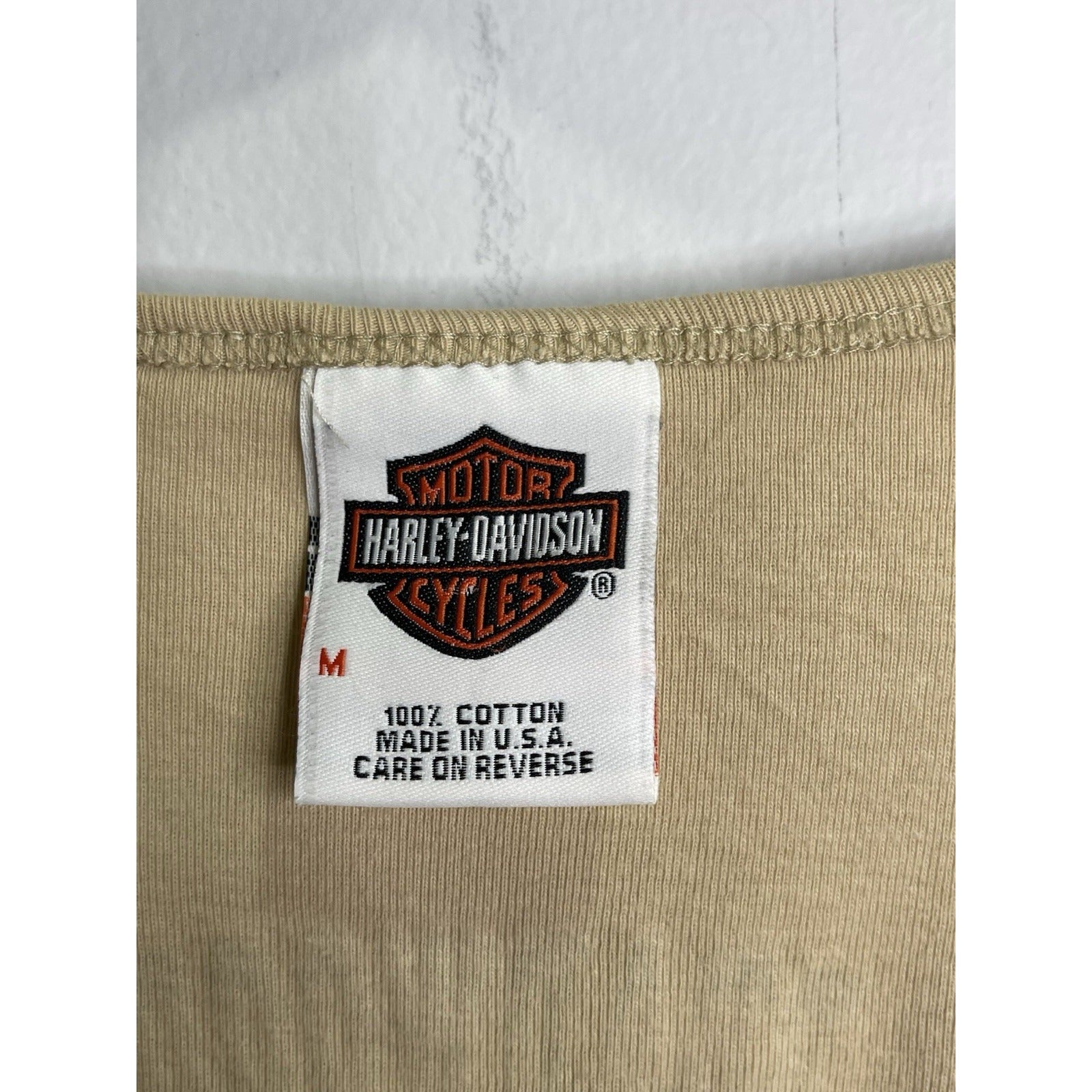 The product is a vintage women's Harley Davidson long sleeve t-shirt in size M. This iconic t-shirt features the Harley-Davidson brand, making it a collectible item for fans of American motorcycles and the Harley-Davidson brand. The long sleeves add a stylish touch to the classic design, making it a must-have for any Harley-Davidson enthusiast or motorcycle aficionado.