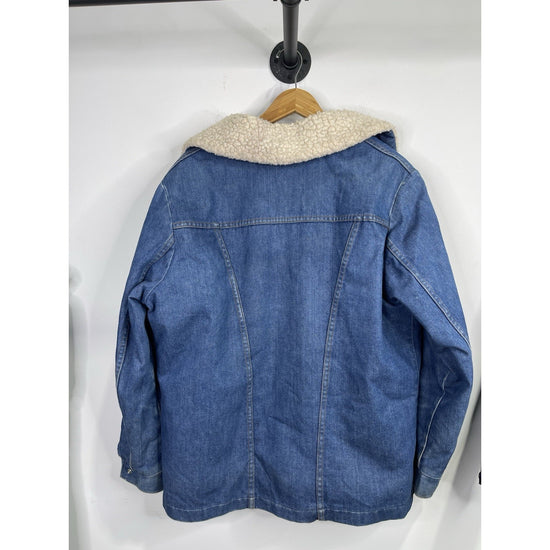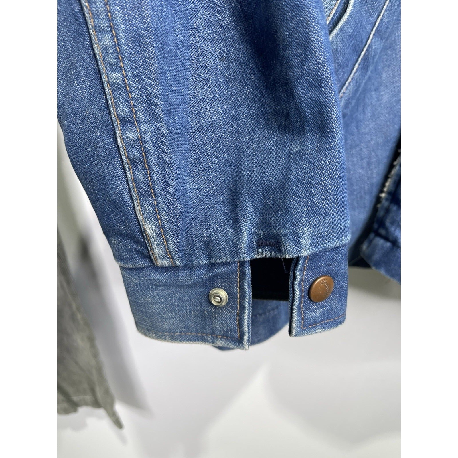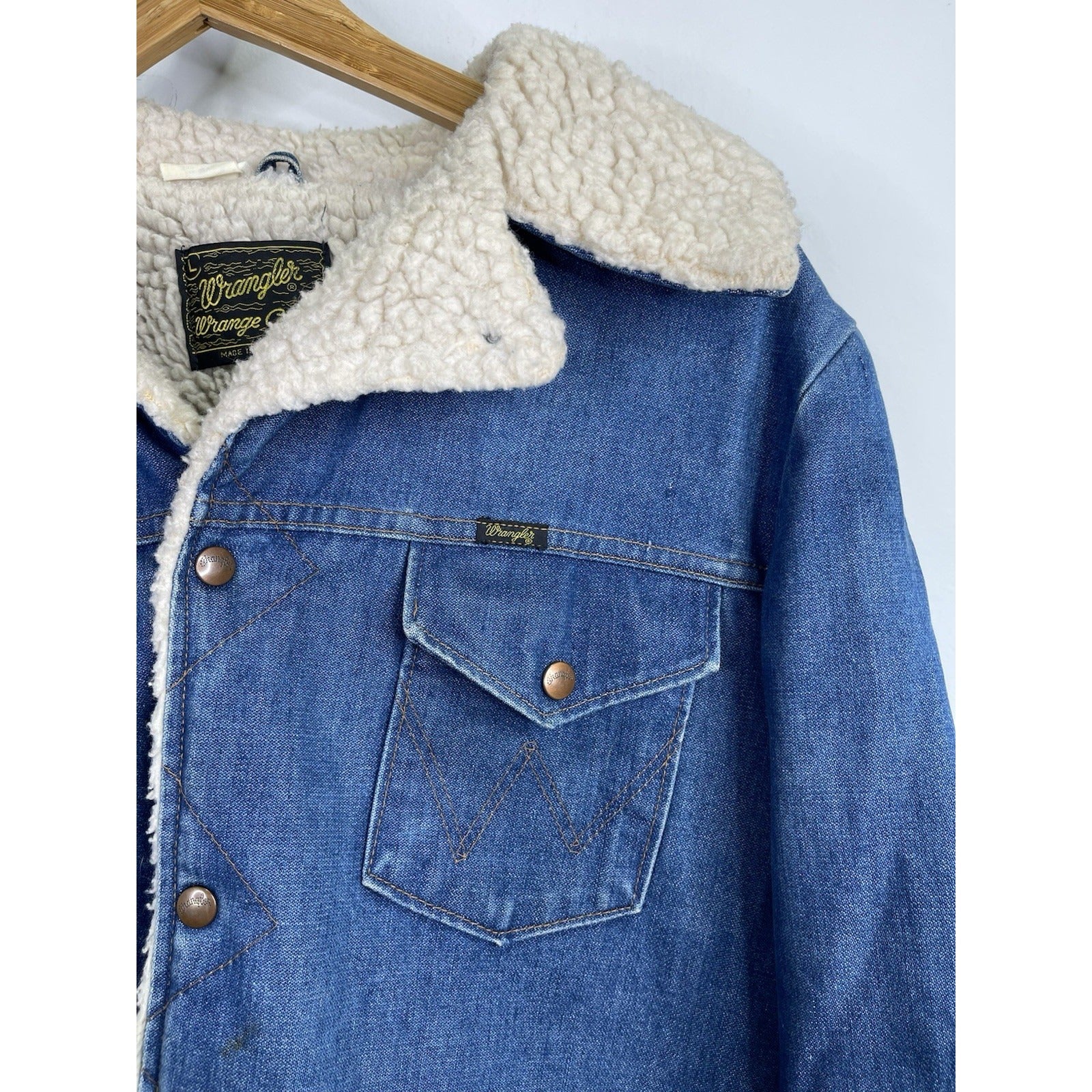 The Vintage WRANGLER Wrange Coat Jacket is a stylish and classic piece perfect for any occasion. Made in the USA with a cotton denim outer shell and polyester lining, this mid-length jacket features a Western theme with a snap closure and insulated design. The blue color and regular fit make it a versatile addition to any wardrobe, while the lined collar and pockets add practicality. Ideal for travel, parties, casual outings, formal events, or workwear, this retro jacket is a timeless choice for all seasons.