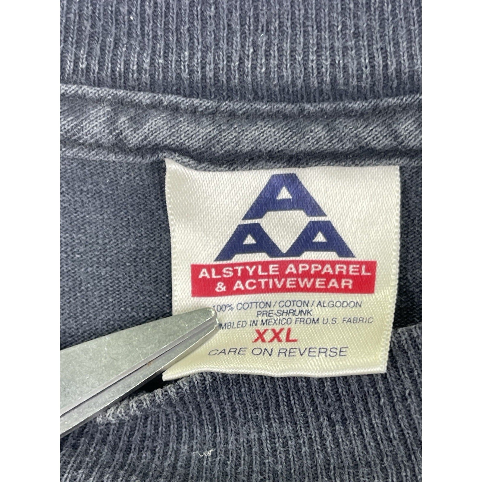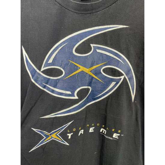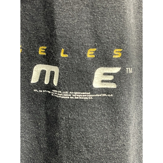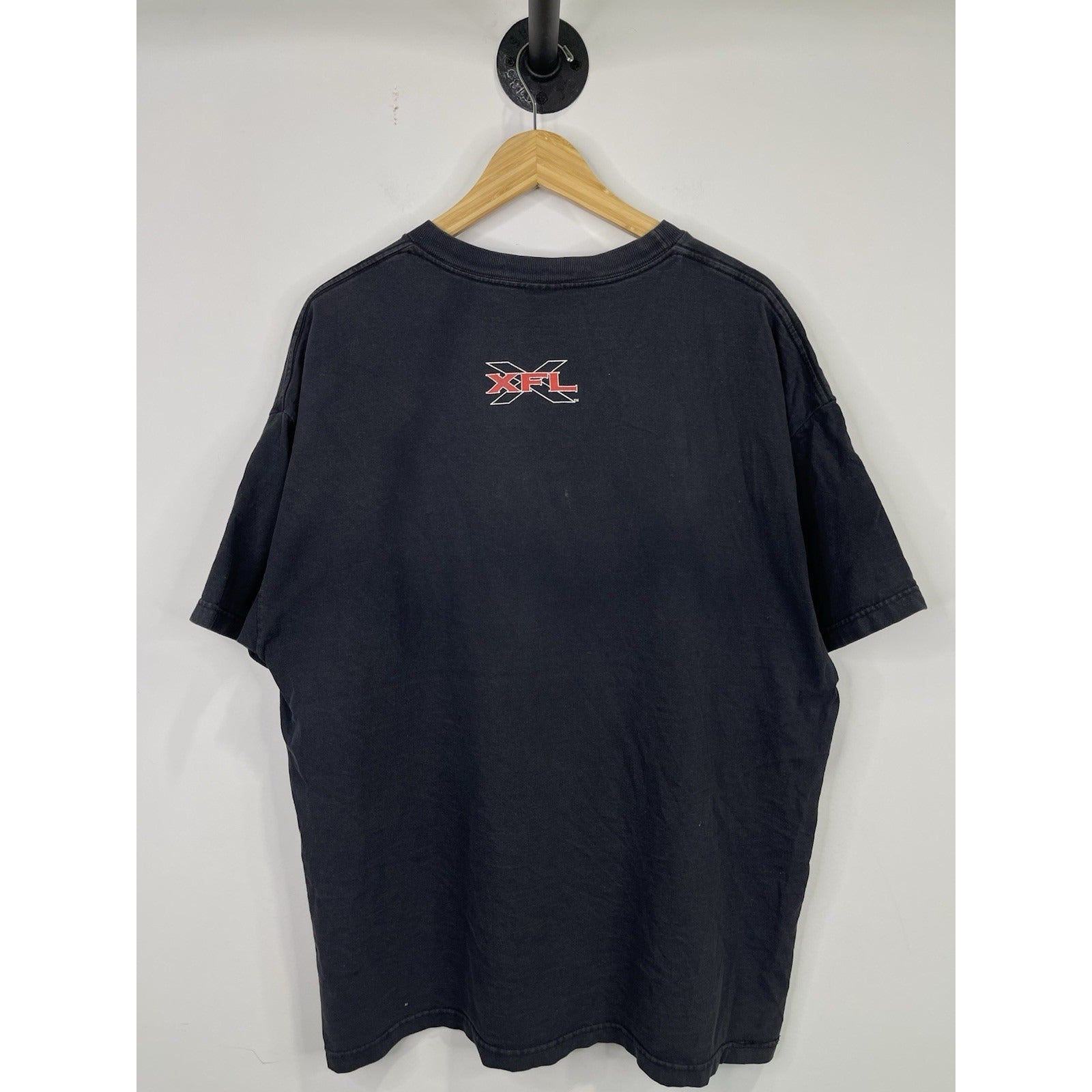 The Vintage XFL Football Los Angeles Xtreme T-Shirt in 2XL size is a dark blue shirt featuring the Los Angeles Xtreme team logo. This shirt is perfect for male football fans looking to show support for their favorite team in style. Made by AAA in Mexico, this shirt is a unique and nostalgic piece for any fan of both football and the XFL. With its classic design and high-quality construction, this shirt is a must-have for any sports enthusiast.
