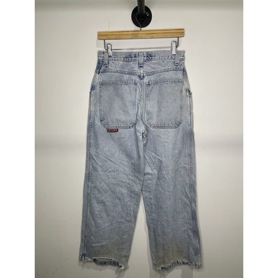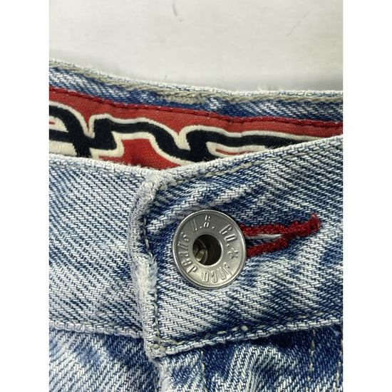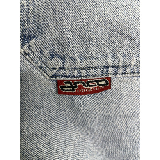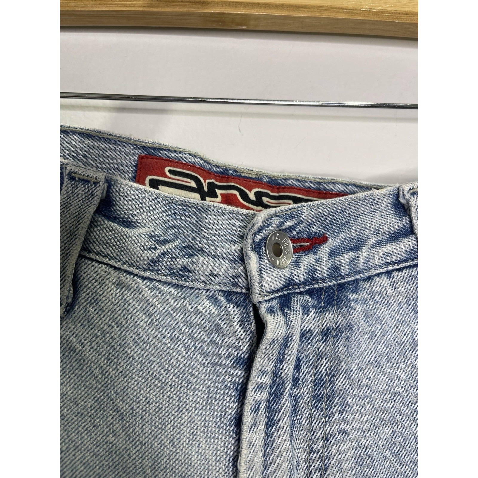 The product is a pair of Vintage Y2K Jinco Loosey Girl Blue Denim Jeans in size 11. These jeans feature a light fabric wash, relaxed fit, button accents, and are made of denim fabric. The jeans are vintage from the Y2K era and are branded as Blue 2. They offer comfort and are designed for women in a regular size fit. Perfect for those looking for a unique and retro style with a relaxed and comfortable feel.