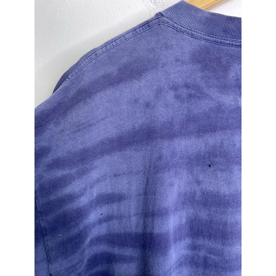 The product is a vintage 2001 Looney Tunes Freeze Taz I Gotta Bad Attitude T-shirt in size XL. This t-shirt features a tye-dye design with a crew neck and short sleeves, made of cotton knit fabric. It has an all-over print graphic of the character Taz with a logo accent, representing the Looney Tunes brand. Ideal for all seasons, this men's shirt is machine washable and showcases a unique design that stands out as a rare vintage find.