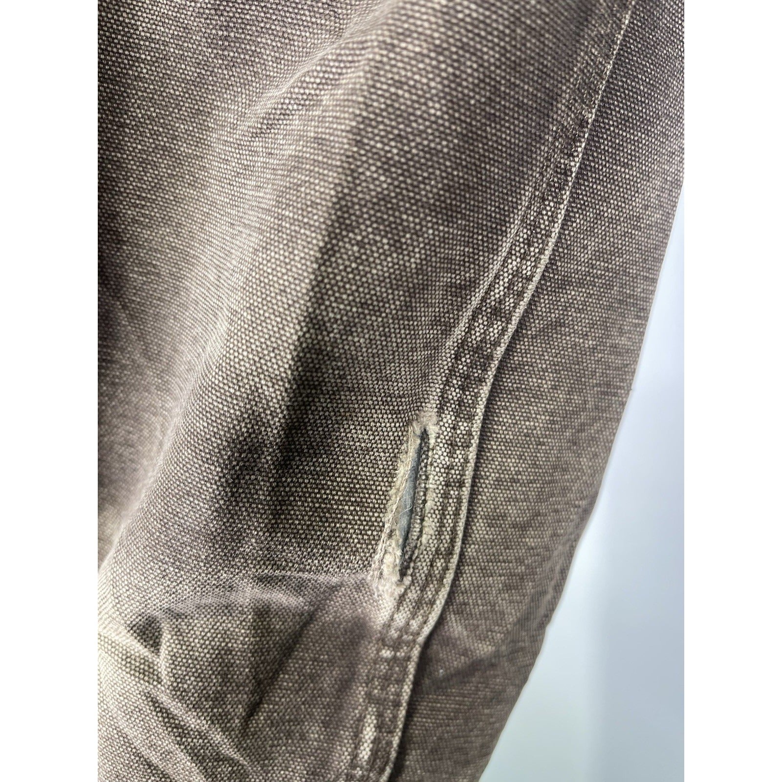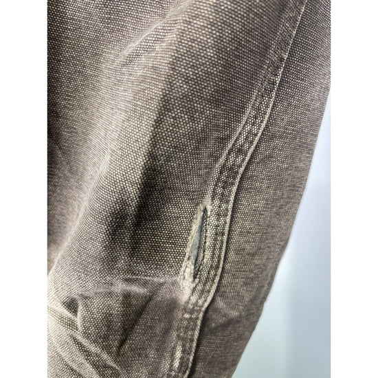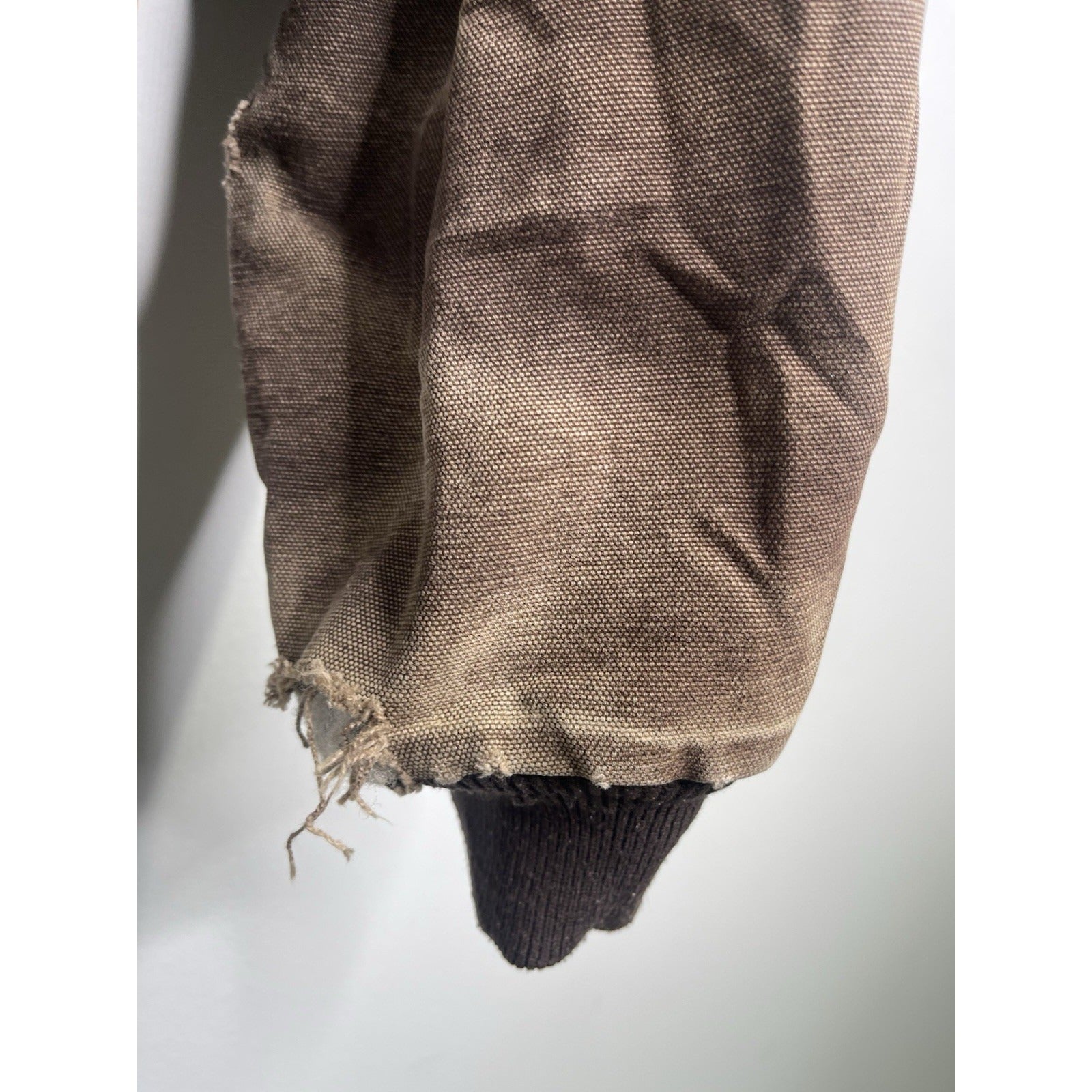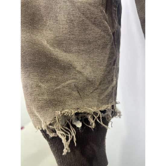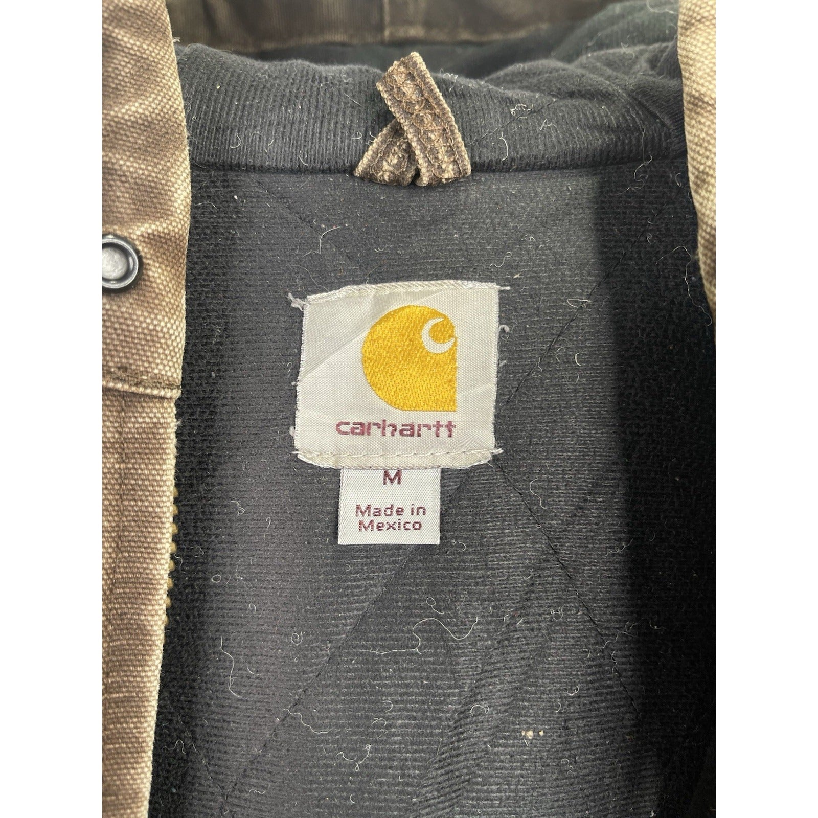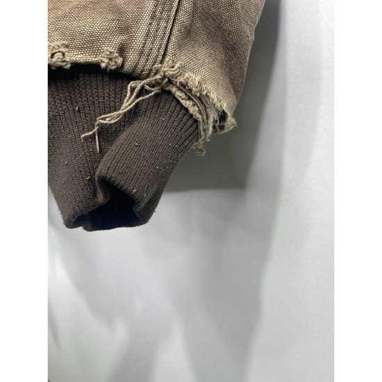 The VTG Carhartt J130 CHT Fleece Lined Full Zip Distressed Hooded Jacket in Brown 2XL is a vintage-inspired outerwear piece perfect for travel, casual wear, and workwear. Made of cotton with a mid-length design, this jacket features a zip closure and a hood for added warmth. The polyester lining and insulation ensure comfort during the winter months, while the classic fit and solid pattern give it a timeless appeal. The distressed detailing adds a rugged touch, making it ideal for those who appreciate a heavy-duty, 90s-inspired style.