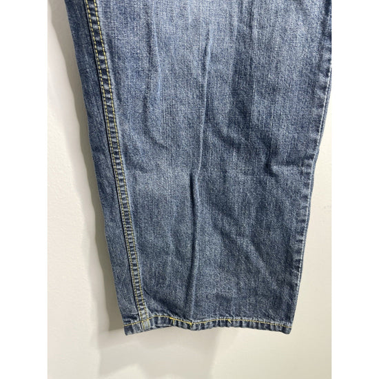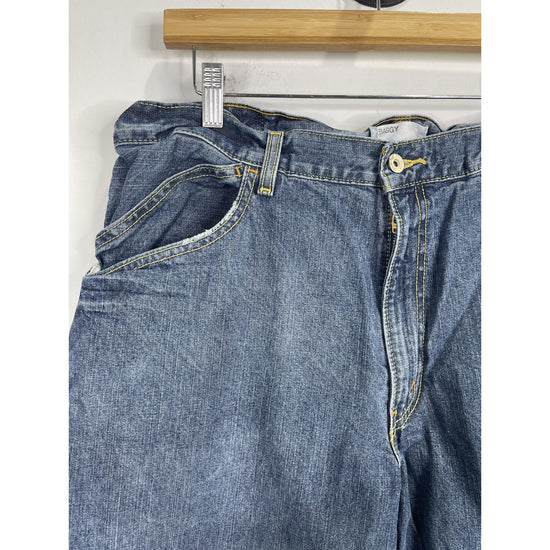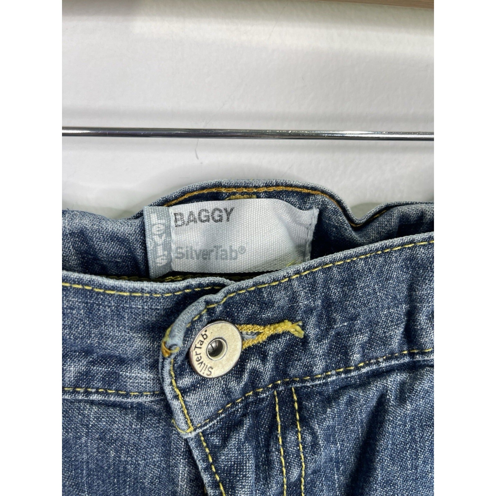 This product is a pair of VTG Men’s Levi's Silver Tab Baggy Jeans in a dark wash denim color. The jeans feature a relaxed fit, zip and button closure, cotton material, and a regular size type. With a vintage 90s theme, these jeans have a loose fit and are part of the Levi's Silvertab product line. They also have pockets and are made in Mexico. Perfect for those looking for a stylish and comfortable denim option with a unique twist on a classic design.