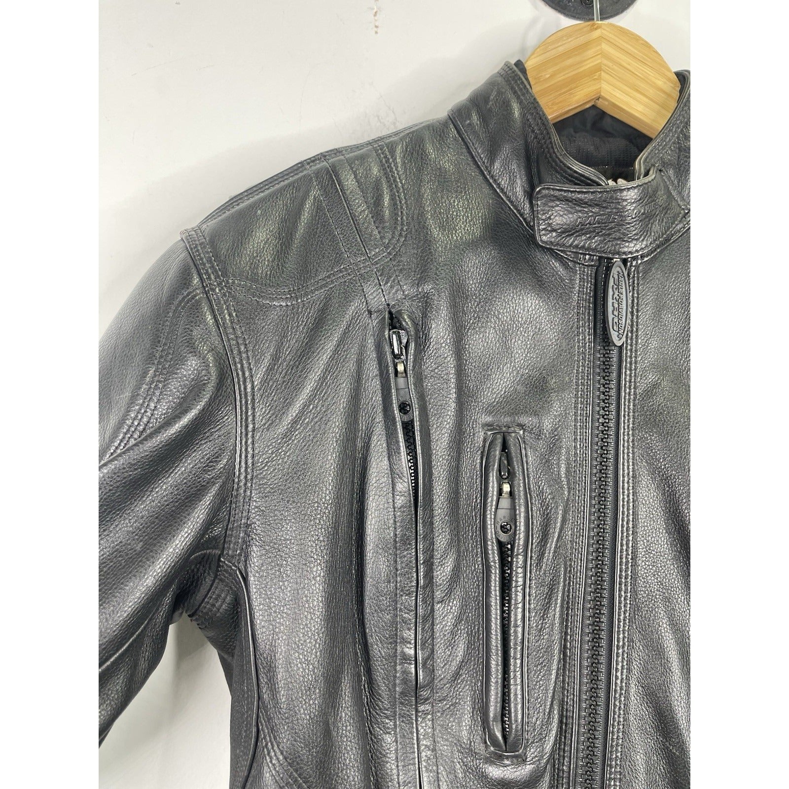 The Wmns Harley Davidson FXRG Series 1 Black Leather Motorcycle Riding Jacket in size S is a stylish and protective piece of outerwear designed specifically for women riders. Made from high-quality leather, this jacket features the iconic Harley-Davidson brand and the signature biker style. With a regular fit and a sleek black color, this jacket provides both comfort and fashion for female motorcyclists looking for a versatile and durable riding jacket. The Harley Davidson FXRG Series combines quality craftsmanship with a classic design, making it a must-have for any female rider.