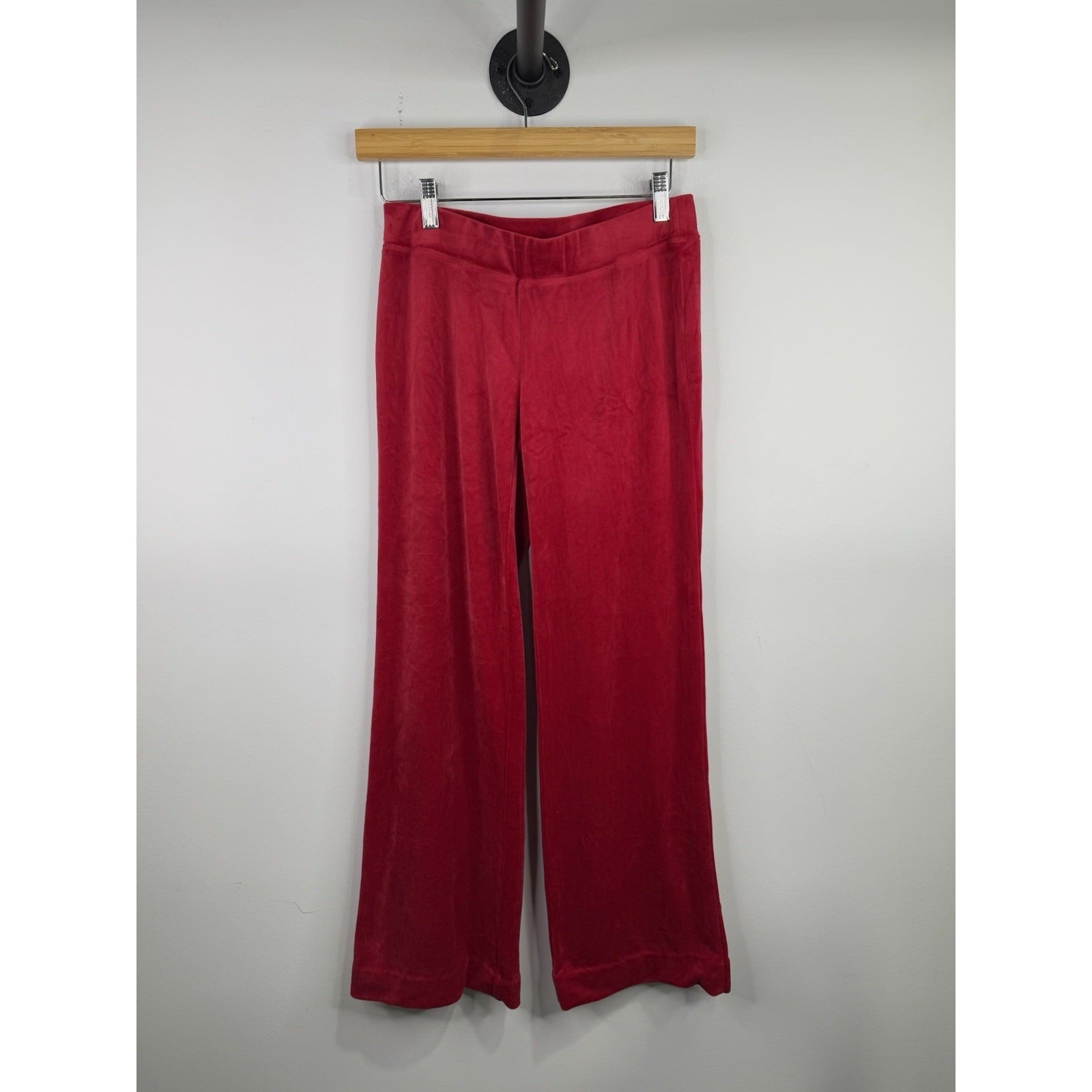 This product is a pair of women's Juicy Couture track suit pants in size small. The pants are red in color and feature a grunge, 90s, gothic, and hip hop theme. They are designed as sweatpants, making them comfortable and stylish for casual wear. The brand, Juicy Couture, is known for its trendy and sporty clothing, making these pants a fashionable choice for women looking to add a touch of edgy style to their wardrobe