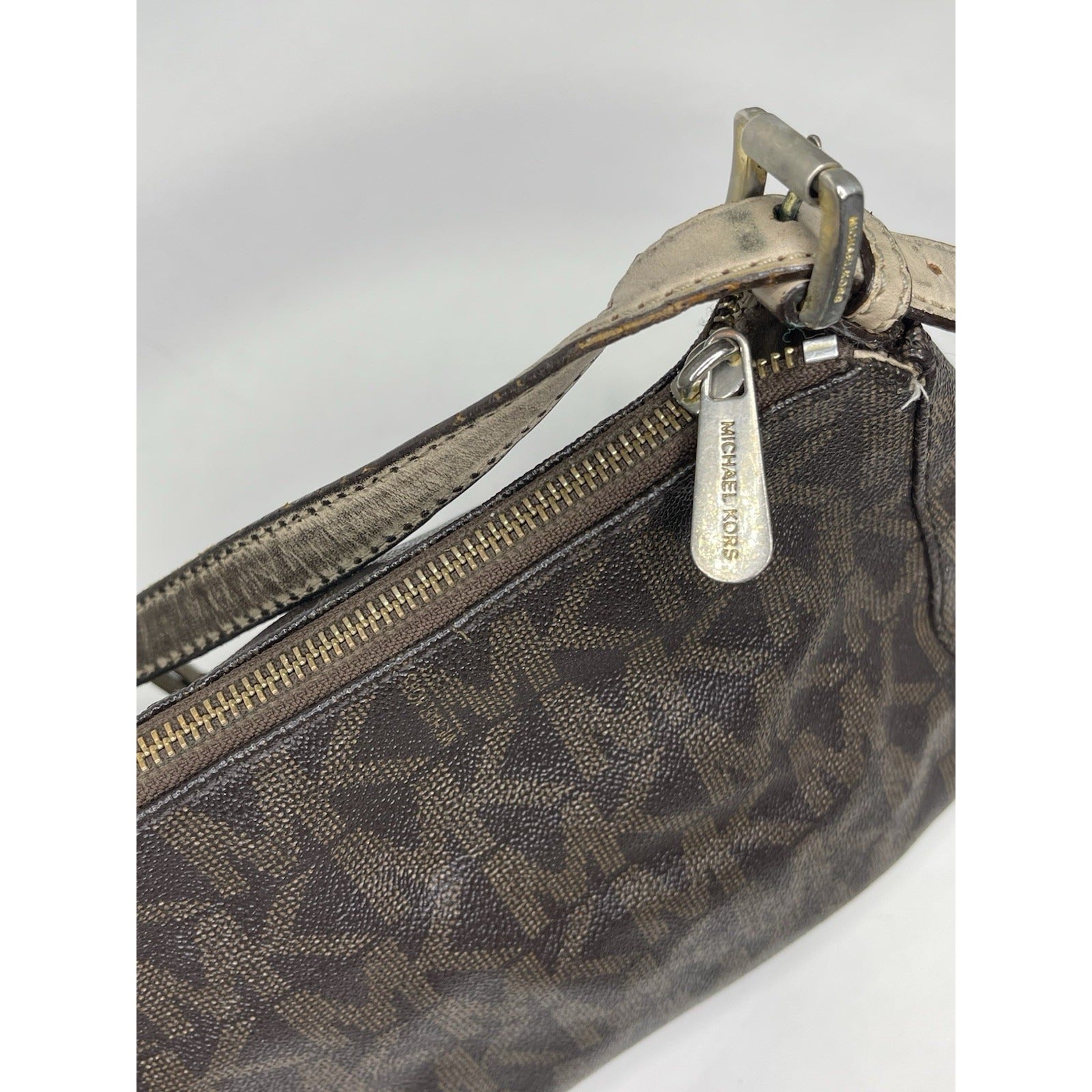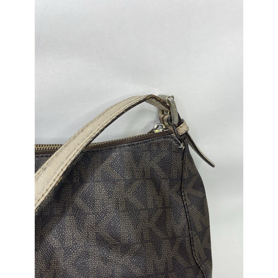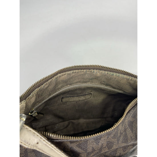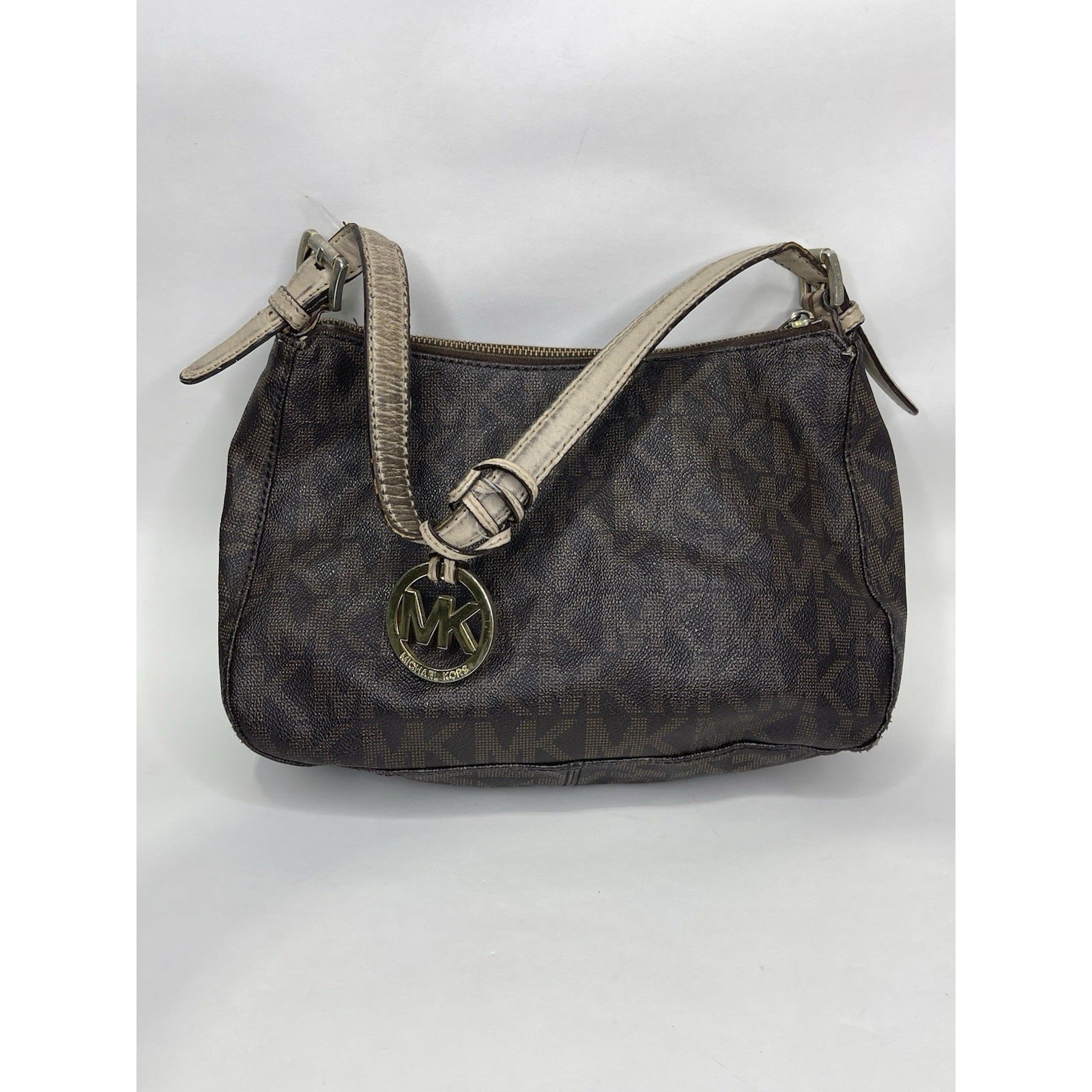 The Women’s Michael Kors Monogram Bag in dark brown is a stylish and trendy handbag from the Michael Kors Signature Bag collection. Made of leather with a monogram pattern, this small-sized bag features a zip closure, beige leather handle/strap, and a brown fabric lining. The bag also comes with a charming accessory and is designed for women who appreciate both fashion and functionality in their accessories. Perfect for everyday use or special occasions, this Michael Kors handbag is a must-have for any fashion-forward woman.