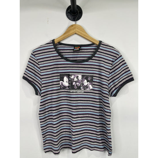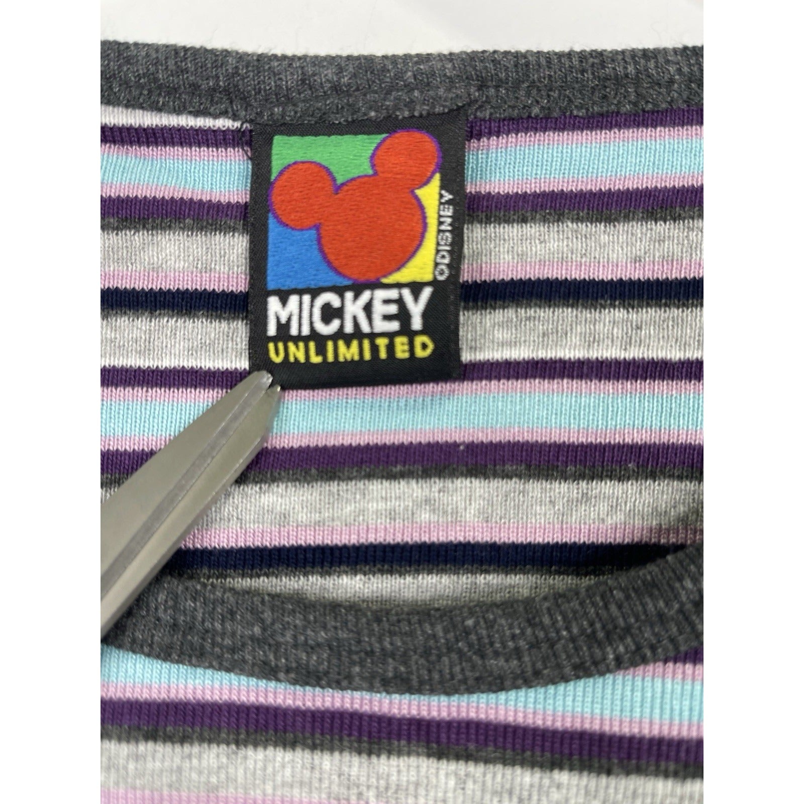 The Women's Mickey Unlimited True Original Mickey Mouse T-shirt in size L is a vintage-inspired piece featuring the iconic character, Mickey Mouse. Made from soft cotton material, this regular fit t-shirt has a classic crew neck and short sleeves, perfect for a casual and comfortable style. The multicolor design adds a fun and playful touch, making it a must-have for any Disney fan or collector of nostalgic clothing.