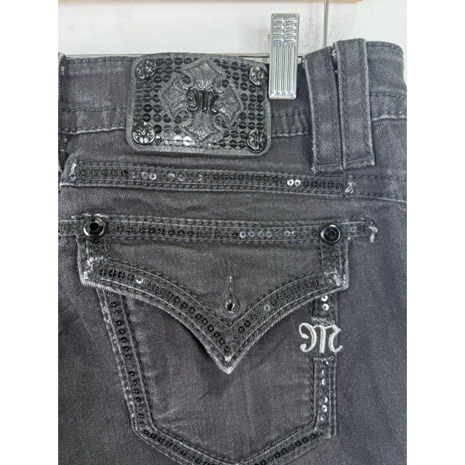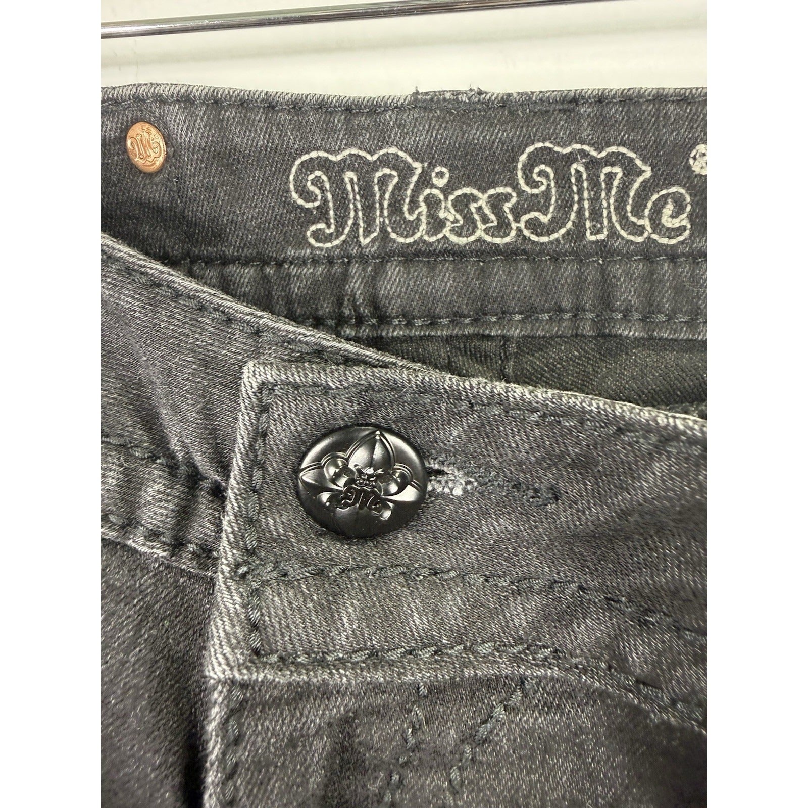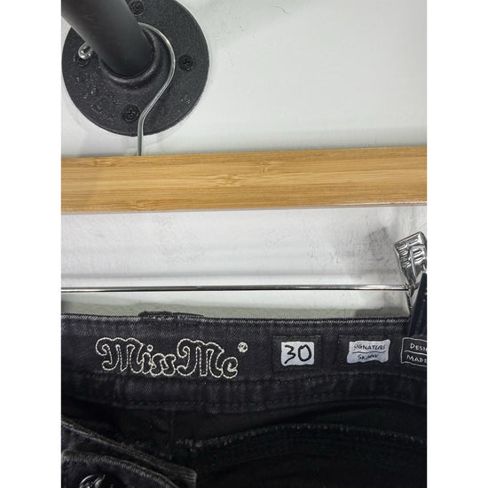 The product is a pair of Women's Miss Me Skinny Jeans in size 30. These jeans are designed for a regular fit with a waist size of 30 inches and an inseam of 30 inches. They are in a stylish skinny silhouette and come in a classic black color. Perfect for adding a sleek and modern touch to any outfit, these jeans are a versatile wardrobe staple for any fashion-forward woman.