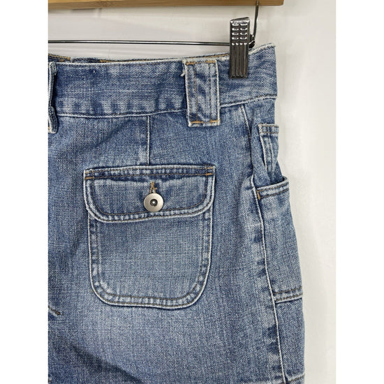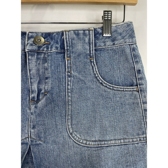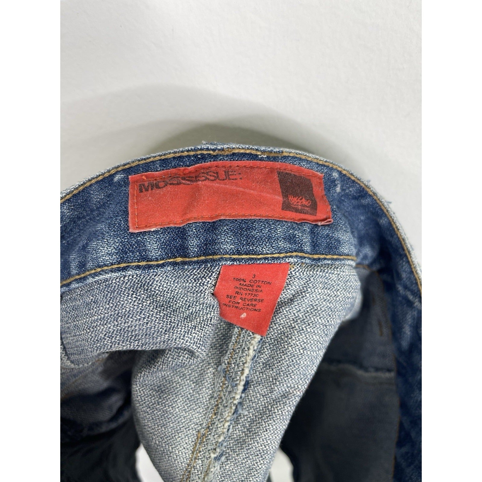 The Women's Mossimo Mossissue Jean Skirt in size 3 is a stylish and trendy piece perfect for juniors. This solid blue skirt features a button closure and mid-rise fit, offering a flattering silhouette. Made from cotton, this mini skirt is adorned with pockets for added functionality and flair. The classic American and 90s-inspired design of this Mossimo skirt makes it a versatile and fashionable option for any casual or trendy outfit.