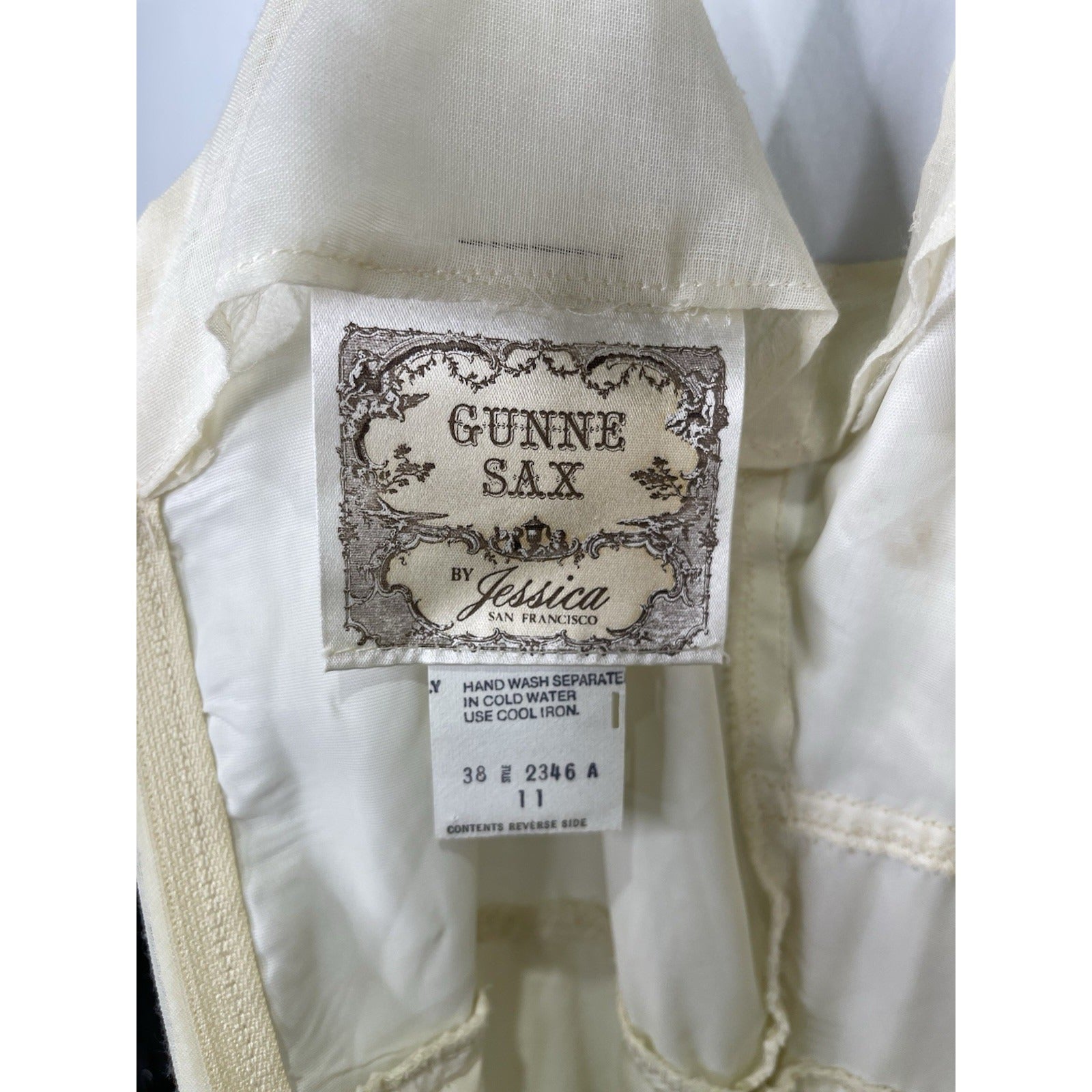 This listing is for a women's vintage 90s Gunne Sax dress in size 11. The dress features a long pleated design with embroidered flower detailing, perfect for a casual occasion with an Art Deco look. Made from cotton, this white sundress exudes a retro charm from the 1900s, making it a unique and stylish addition to any wardrobe.