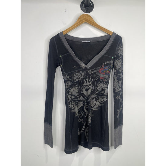 The Women’s Y2K Monteau Floral Design Long Sleeve Thermal Shirt is a vintage-inspired piece that combines a slim fit with a beautiful floral pattern, perfect for those who love art, rock, and gothic themes. The black shirt features long sleeves and is made with thermal material, making it both stylish and comfortable. The Y2K aesthetic and Monteau brand add a touch of nostalgia and designer flair to this basic t-shirt, ideal for those embracing a retro or hipster style.