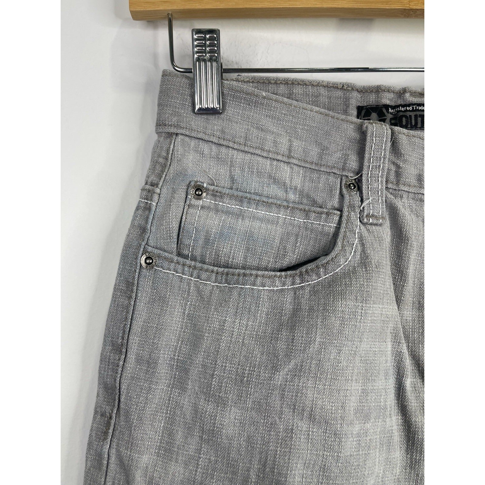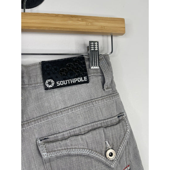 These Women’s Y2K South Pole Jean Shorts in gray are a stylish addition to any casual wardrobe. Made of comfortable cotton denim with a high rise, they feature a zip closure and a 5-pocket design. The baggy and loose fit, along with the long Bermuda style, makes them perfect for a relaxed and trendy look. Machine washable for easy care, these shorts in size 12 and waist 28 inches offer a comfortable and fashionable option for any occasion.