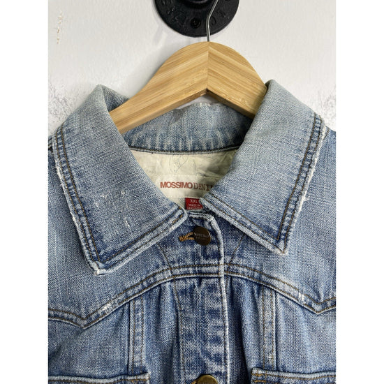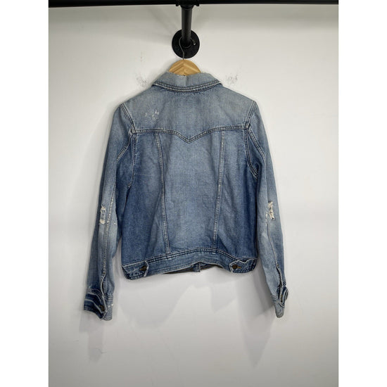 This Women's Mossimo denim distressed light blue jacket in size 2XL is a stylish and versatile addition to any wardrobe. Made from cotton denim, this basic jacket features a regular fit and a classic blue color that can be easily dressed up or down. The distressed detailing adds a trendy edge, making it a fashionable choice for any casual outfit. Perfect for everyday wear, this jacket from Mossimo is a must-have for any woman looking for a comfortable and trendy outerwear option.
